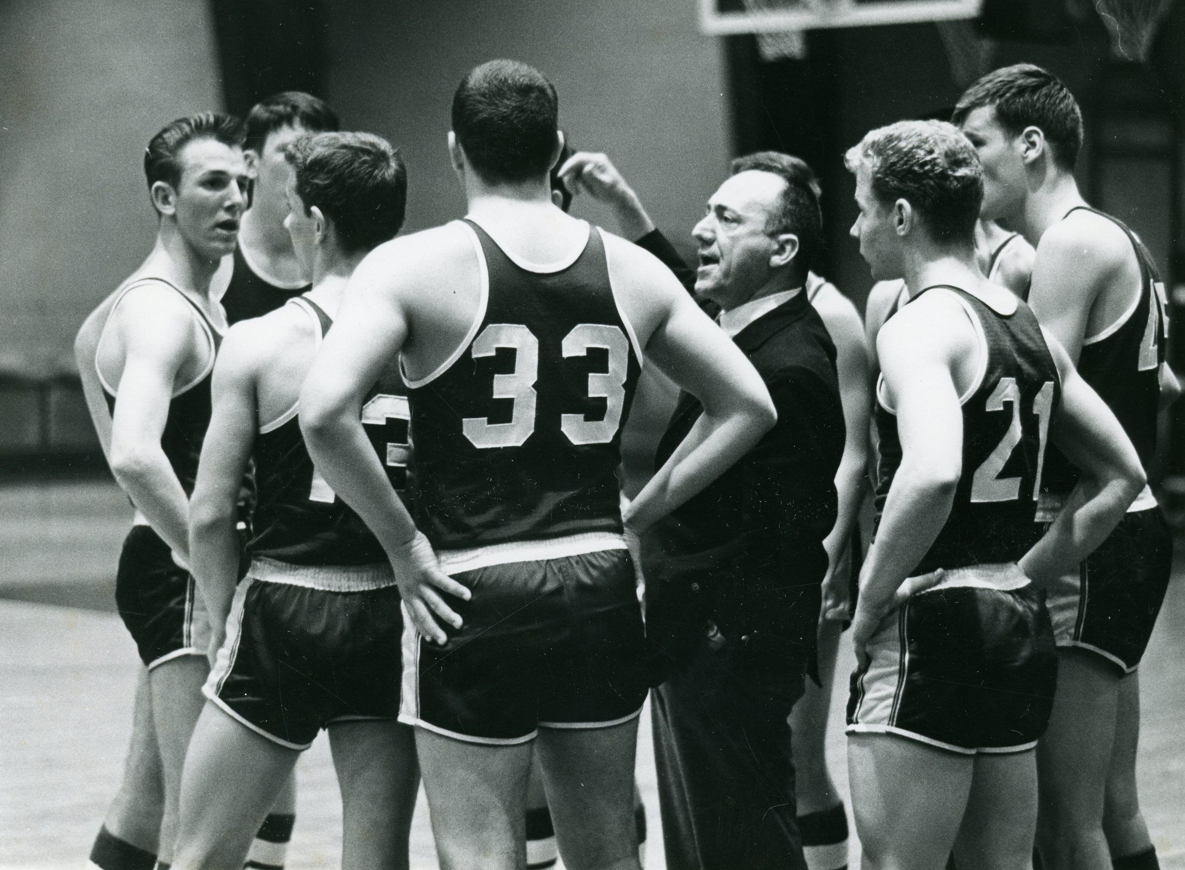 St. Marys Boys Basketball. Coach Manny Lentine speaking to team.