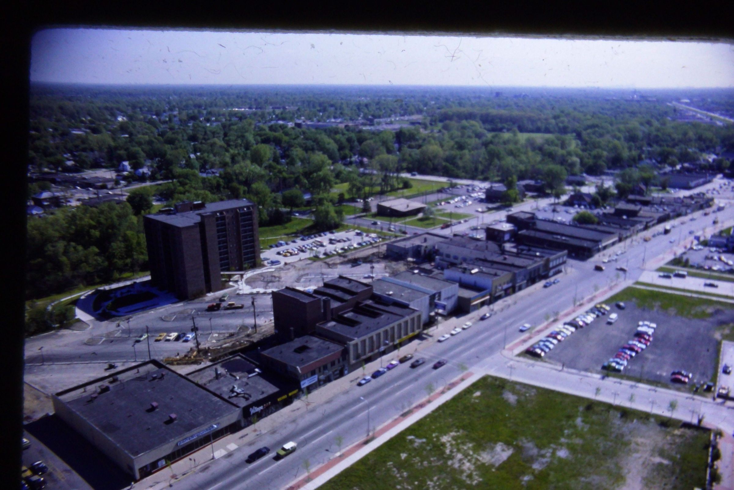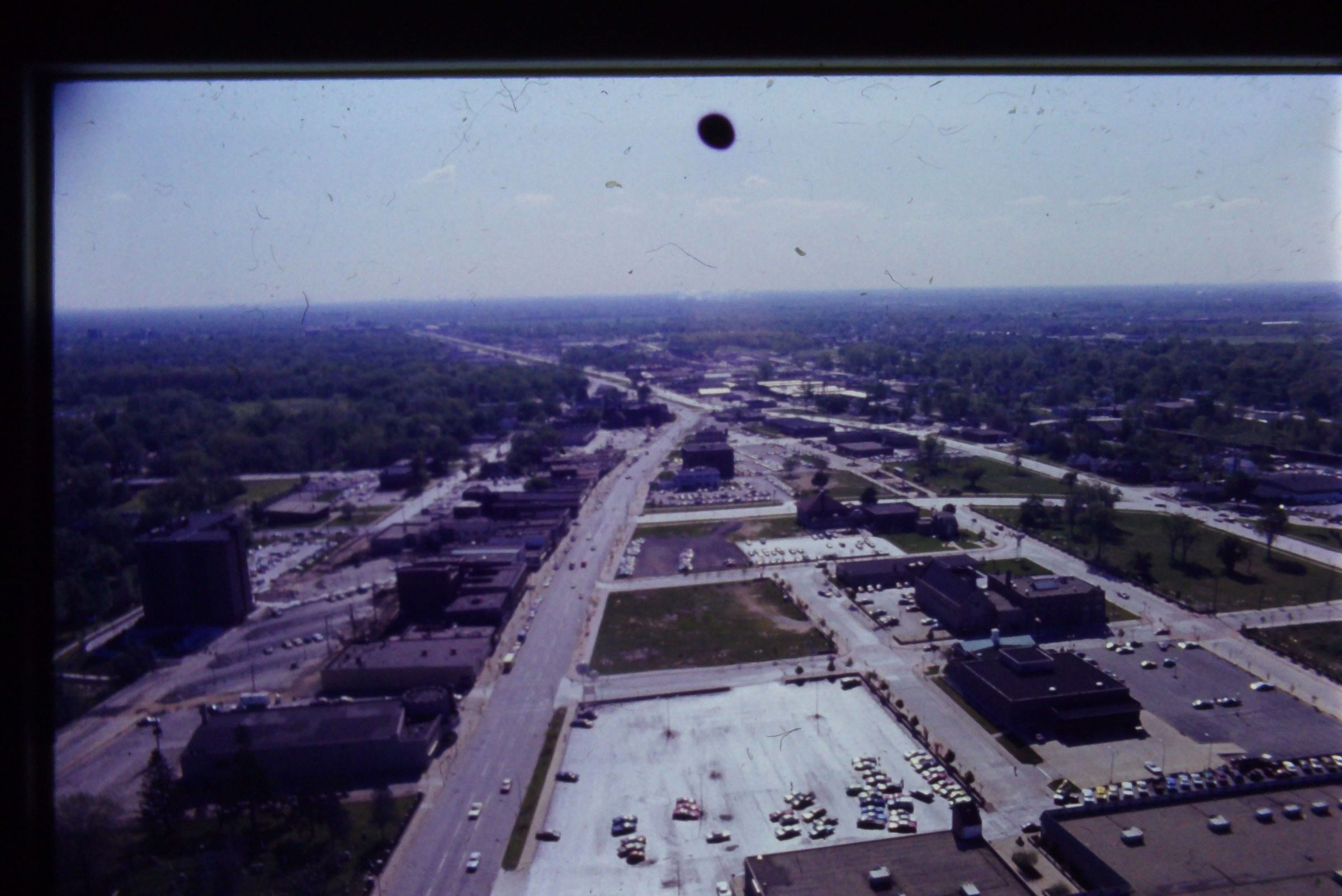 Aerial over WB Michigan Avenue looking SE. 1970s, post urban renewal.