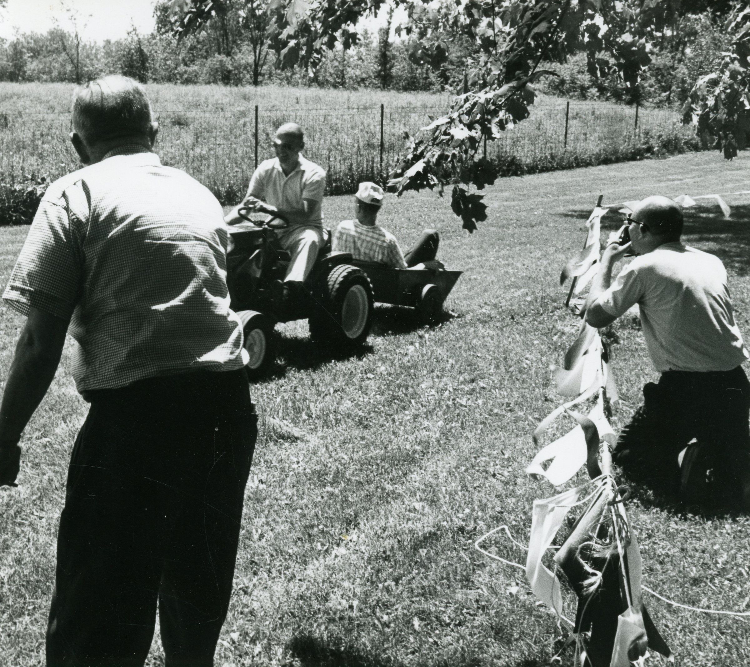 Rotary Club Member M. Tinkham driving a tractor on June 21, 1965. "Eagle" took the picture.