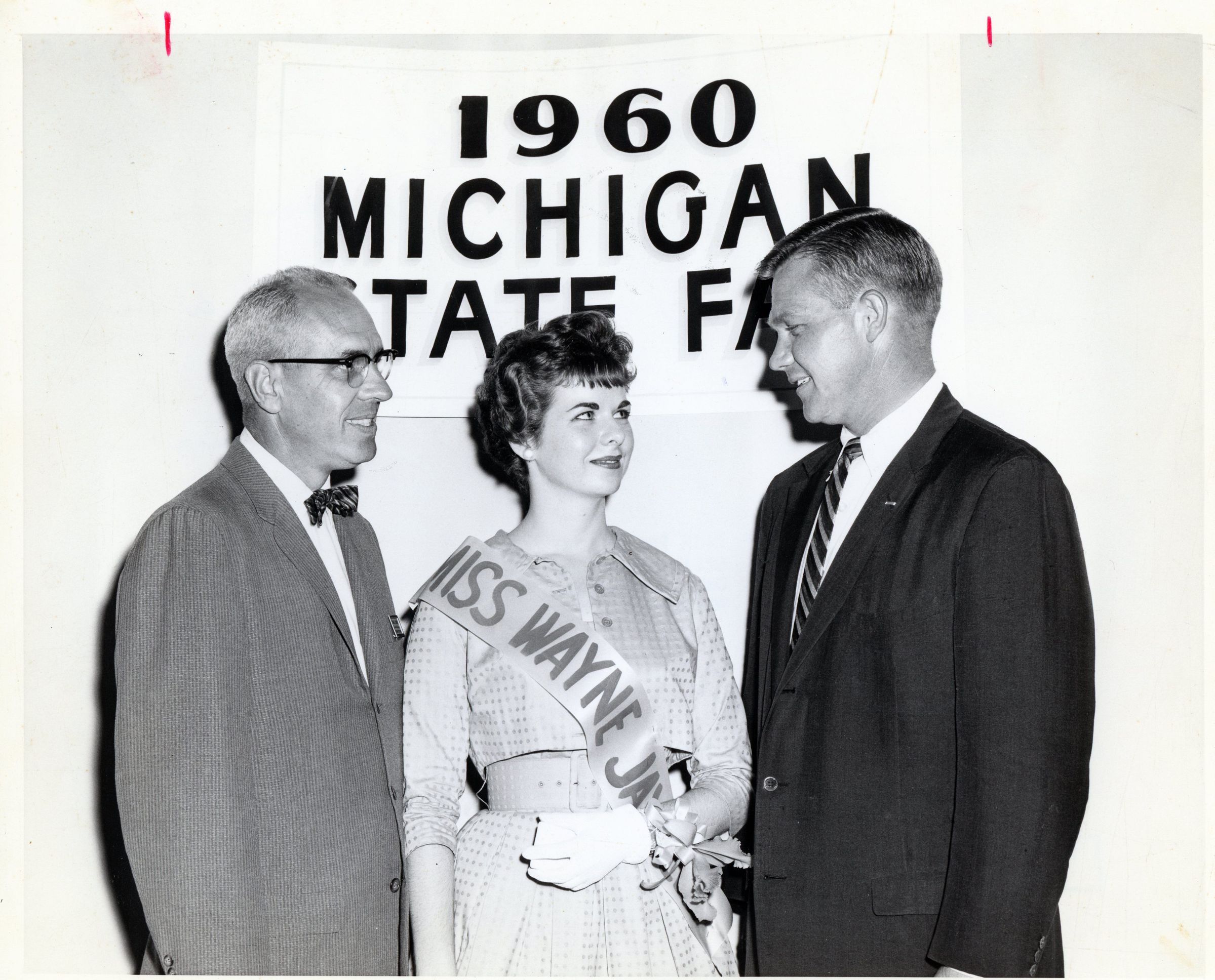 1960 Miss Wayne Jaycee Joan White with General Manager Donald Swanson and Lt. Gov. John B Swainson at the 1960 Michigan State FairCataloged By
