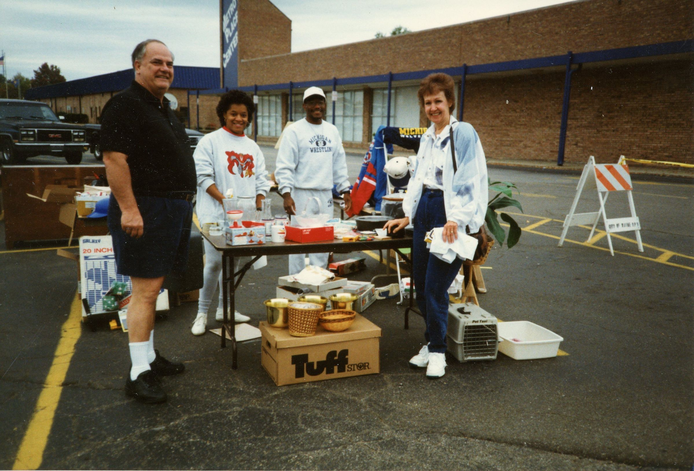 Garage sale, Metro Mall. Ed & Donna McMurray (Front), browsers.