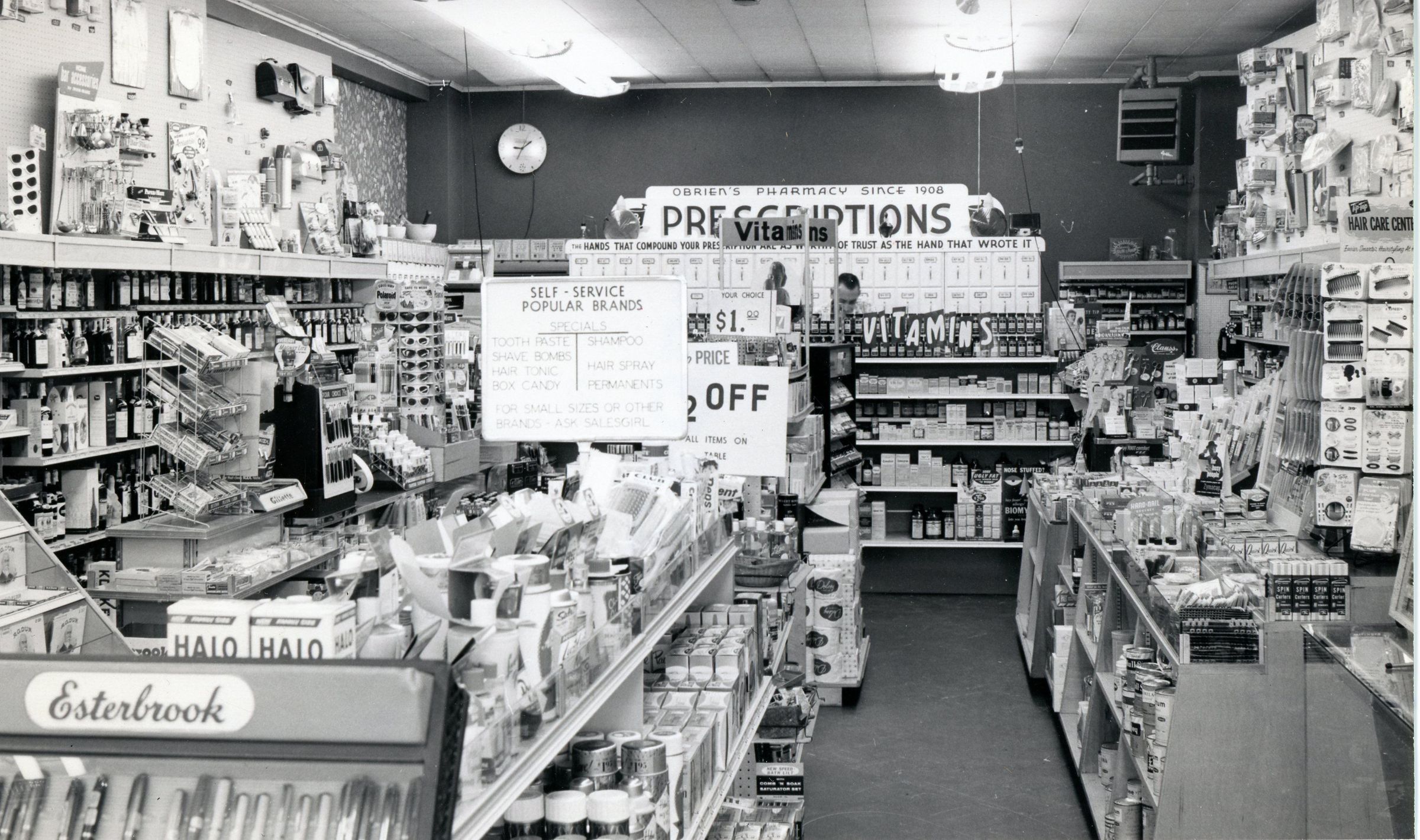 O'Brien's Drug Store, Eagle photo. SE corner of Mich and Wash. 1950's.