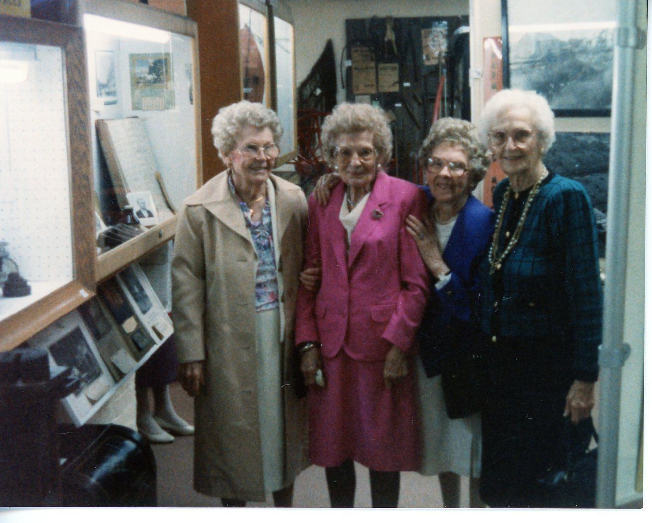Museum visitors from L to R: Agnes Clark, Nettie Walker, ?, and Helen Stein