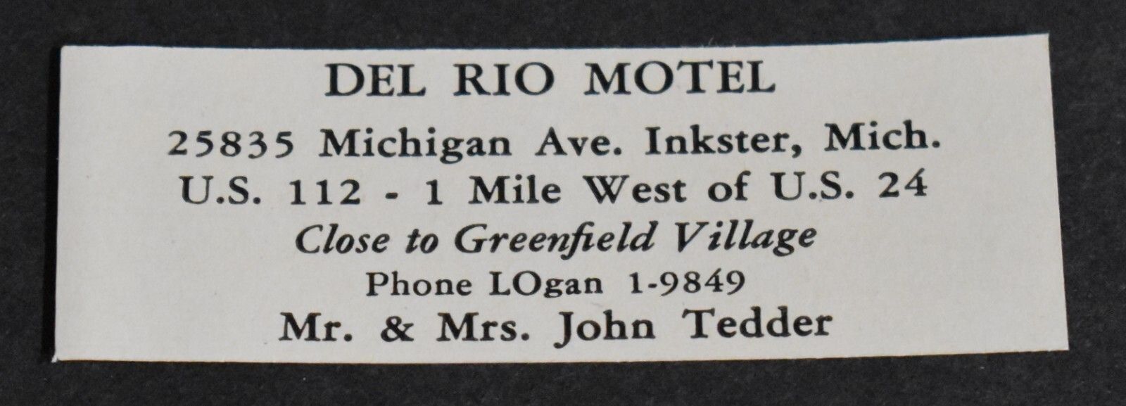 25835 Michigan - Del Rio Motel. Mr. and Mrs. John Tedder Owner-Operators.