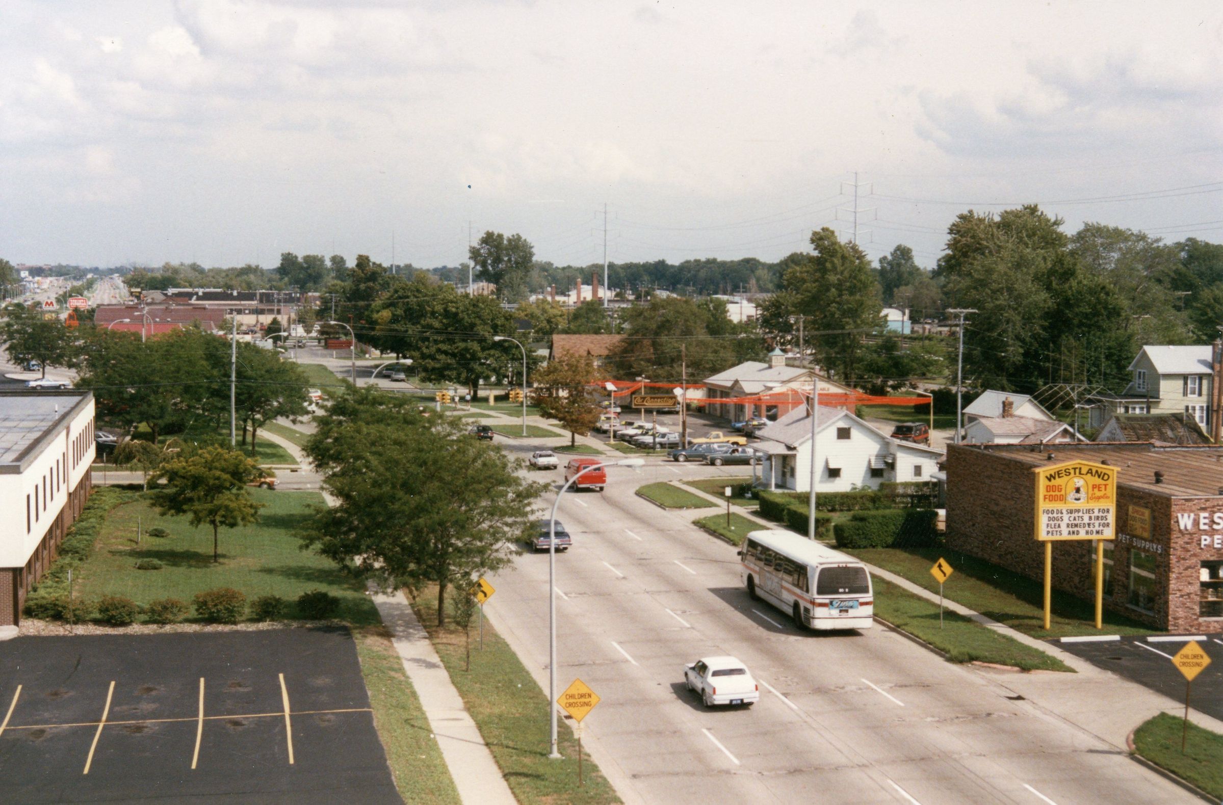 Michigan Ave. EB at 1st street looking East. Taken from top of Parking Structure.