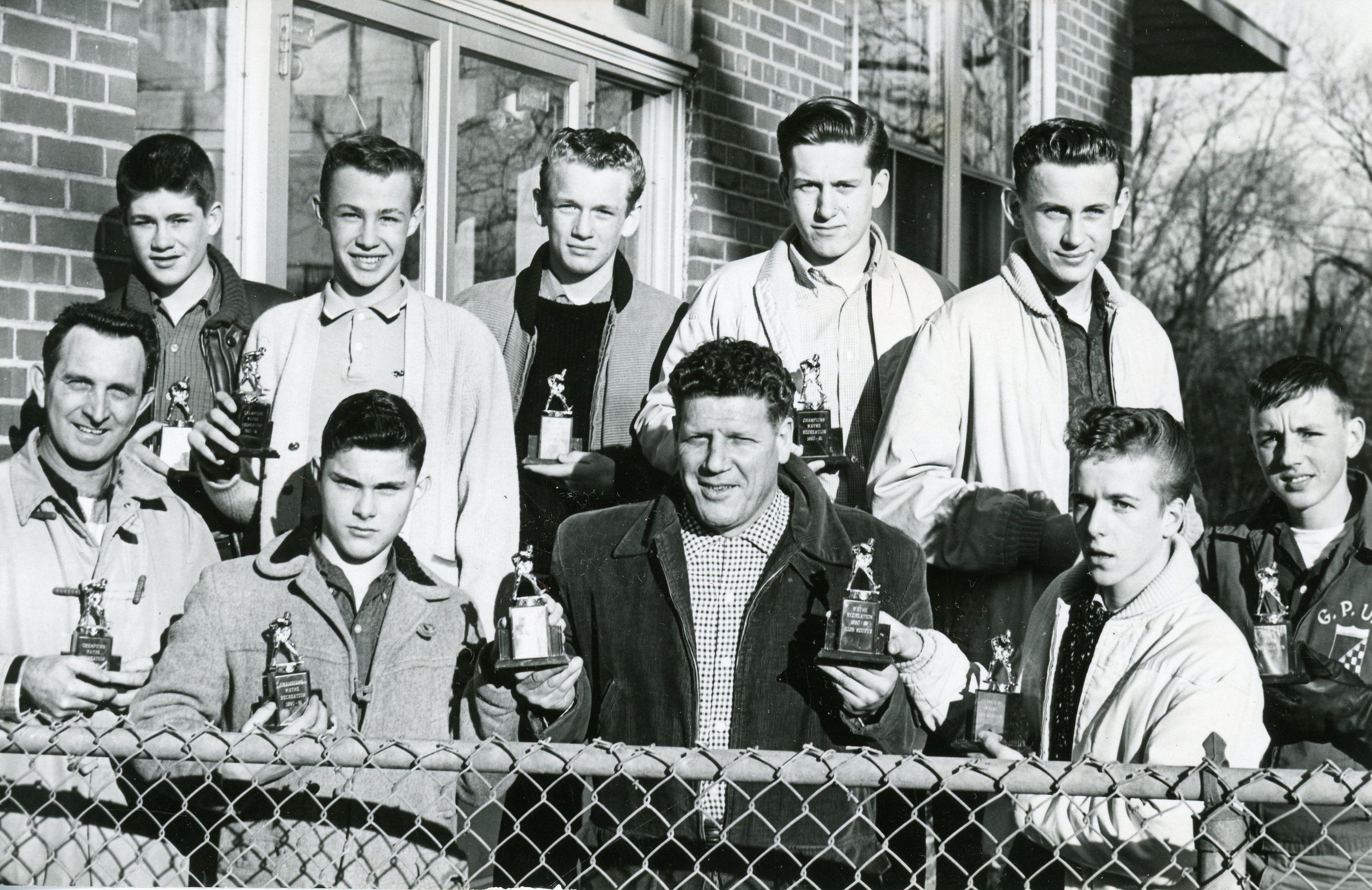 Wayne Rec. Hockey Champs 2-15-1961. Back center Larry Irwan, Front right "Duff" Brown, Front left center Ron Mullen