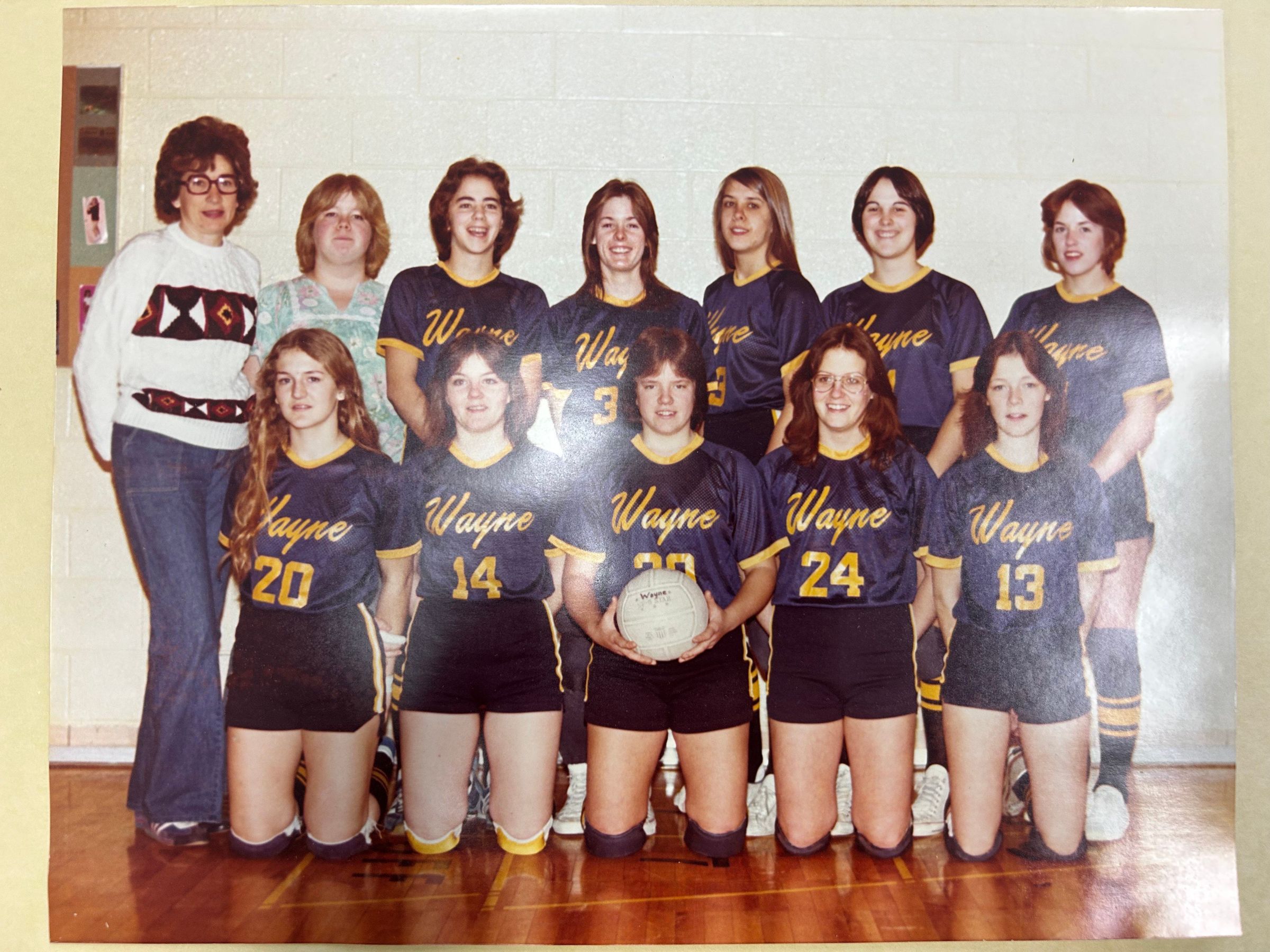 Front row:Dawn Pullen(20), Mary Fufnell(14), Beth Tracy(30), Patty Rogowski(24), Arlene Thomas(13), second row: Coach Doris Busuita(1), Nonette Poliszewski(2), Colleen O' Brien(3), Sandy Braun(4), Ann Kolnitys(5), Wendy Reynolds(6), Pam Kolehmanien(7) not in picture Sharon Foutaine and Lisa Rumple.