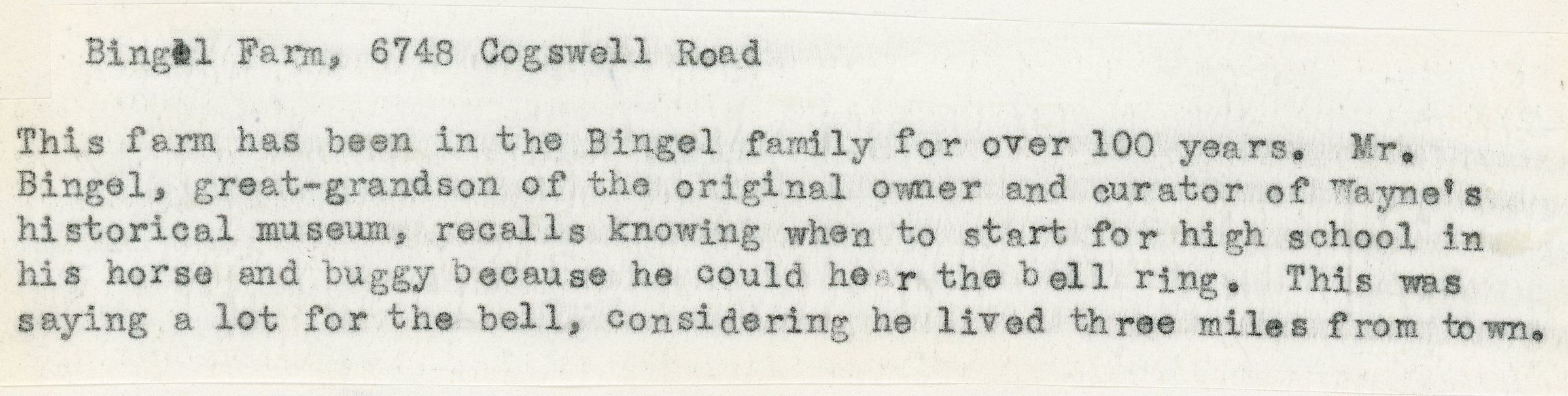 6748 Cogswell Road, Bingel Farm. Burned down 1978.
