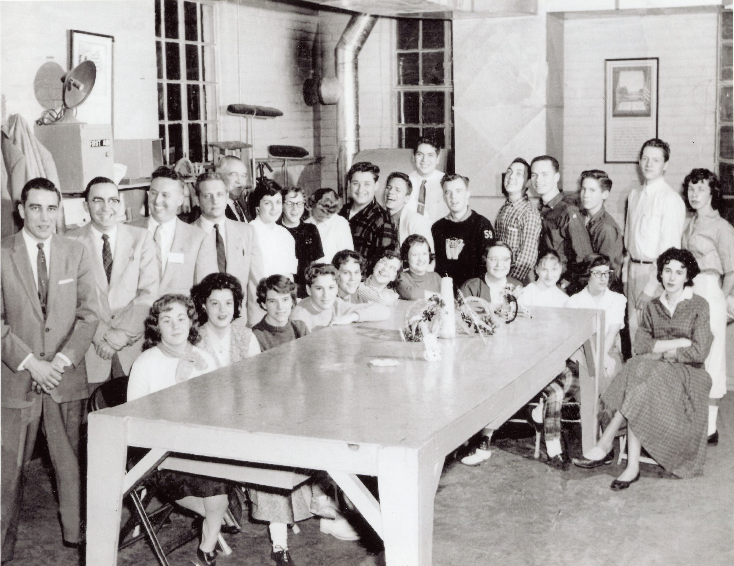 Wayne Memorial High School, Junior Achievement Student Group 1959-60. In unknown order: Leon Wideer, Kathy Fisher, Jim McDougall, Carol Johns, Roy Bochur, Frank Alessi, Judy Lane, James Uetz, Marsha Cross, Don Leppala, Rick H., Francis Martin, Diane Nowaczck, Susan Catherman, Skip Montahue, Buddy Smith, Karen St. Charles, John Jackson, Jean Bullock, Pam Zimmerman, Leon Peters