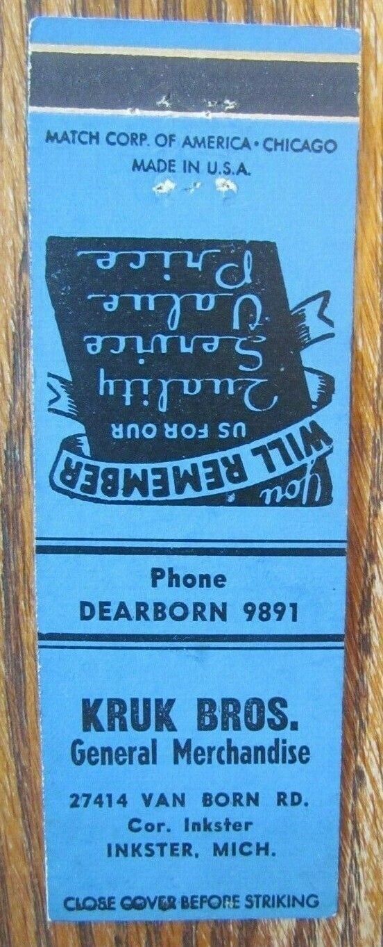 27414 Van Born - Kruk Bothers General Merchandise Matchbook CoverContext