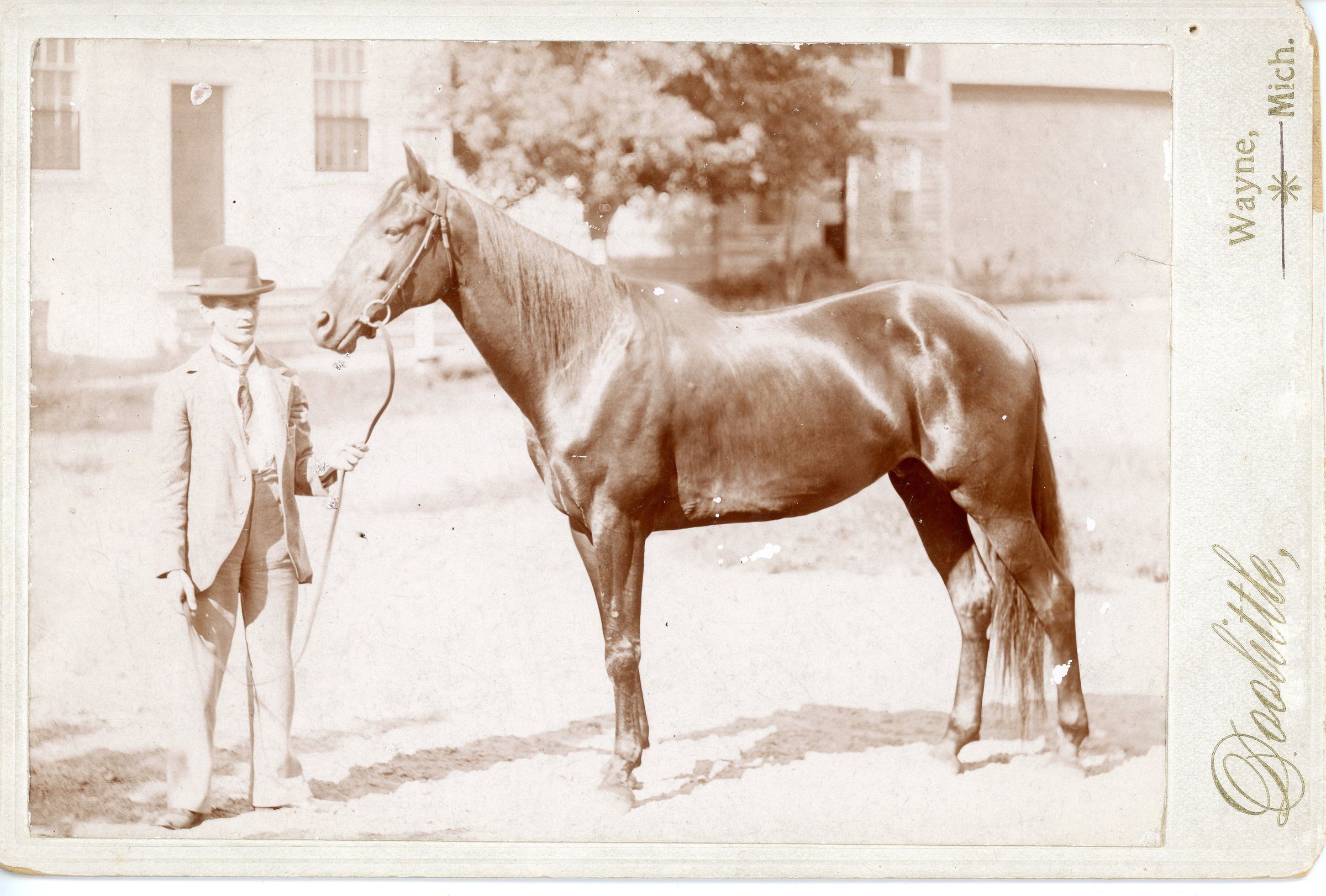 Anthony Snyder and Horse in front of Universalist Church. Doolittle Photo.