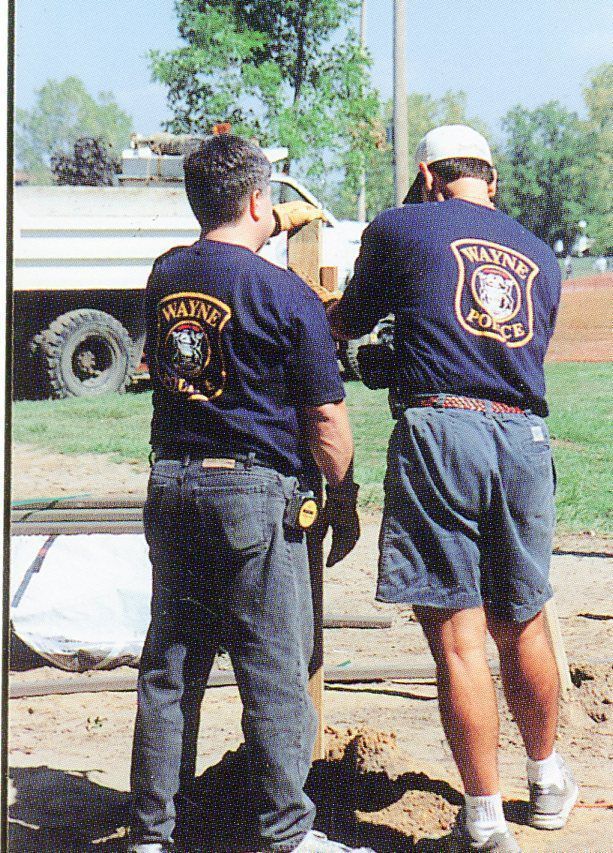 Wayne Police Officers building something on Sept 1998. On the left is Spunar.