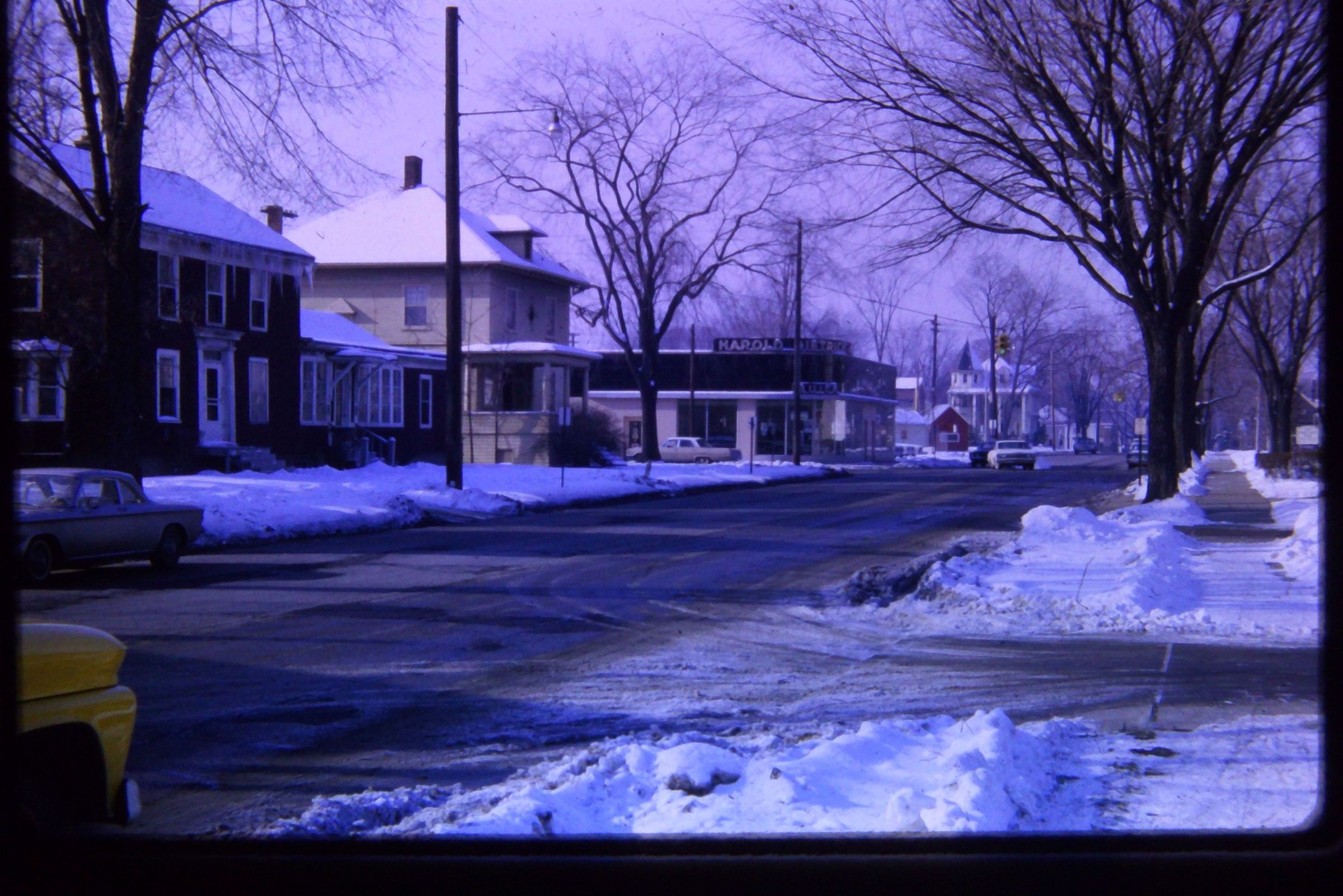 South side of Main Street looking SW towards Washington. 35029, 35033, 35043, 35109 Main. Harold Dietrich Dealership at SW corner Main and Washington. 1964. Pre Urban RenewalCataloged By