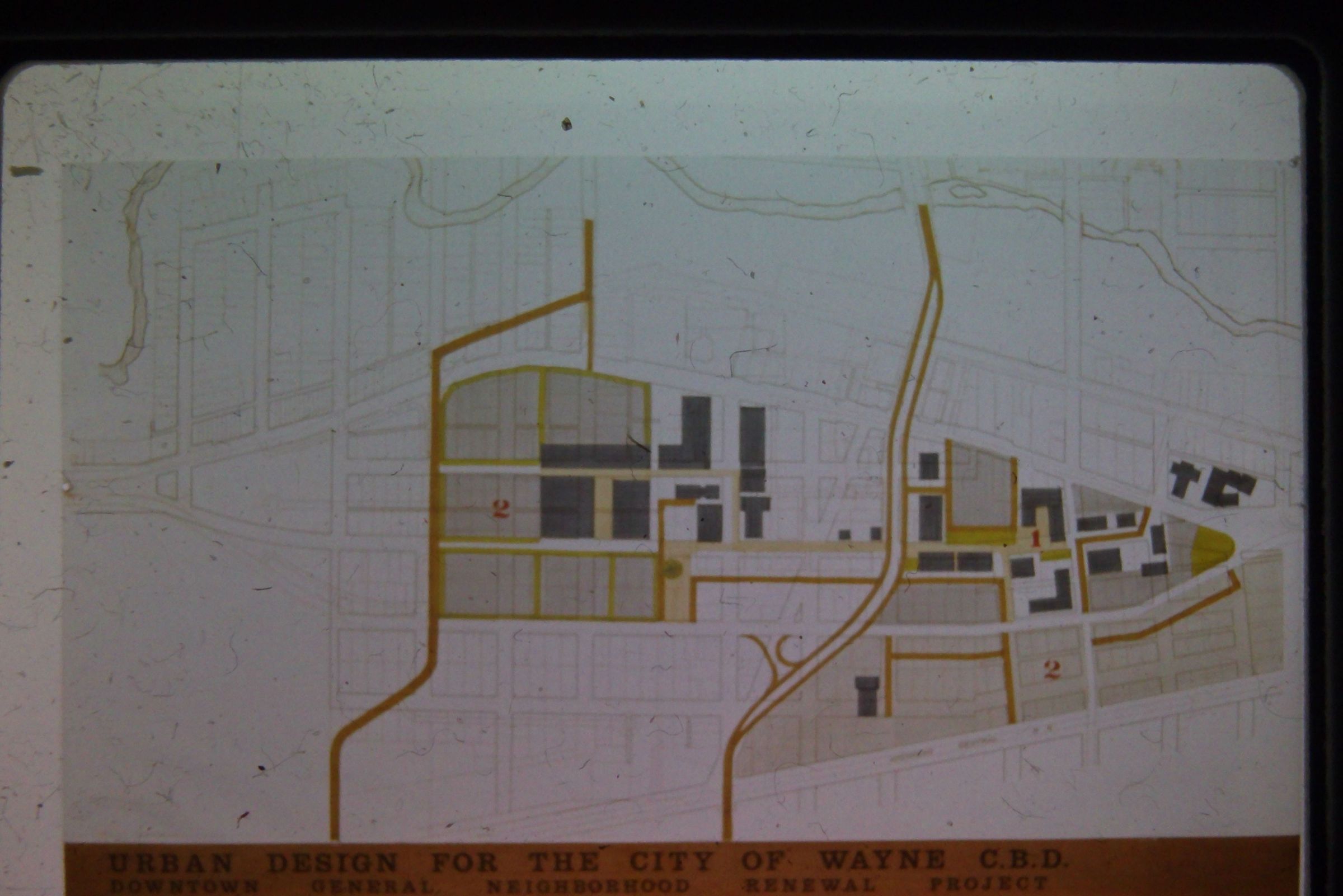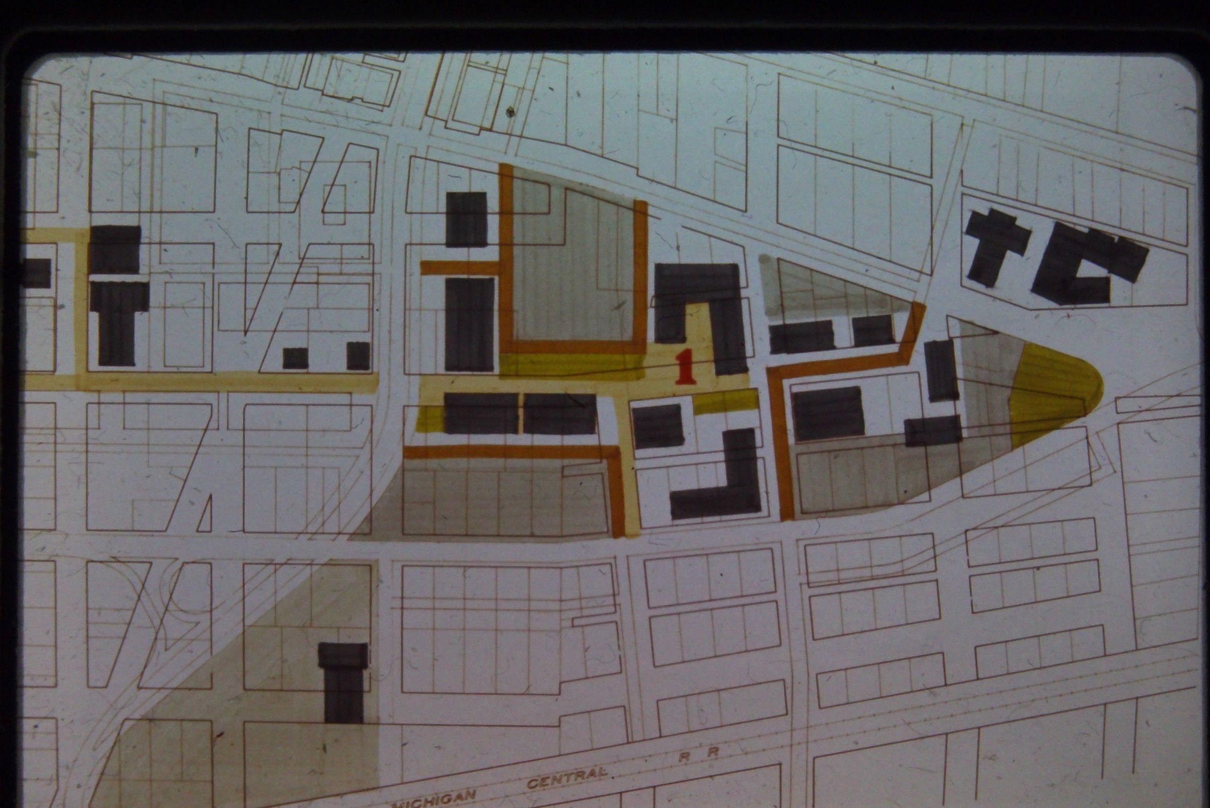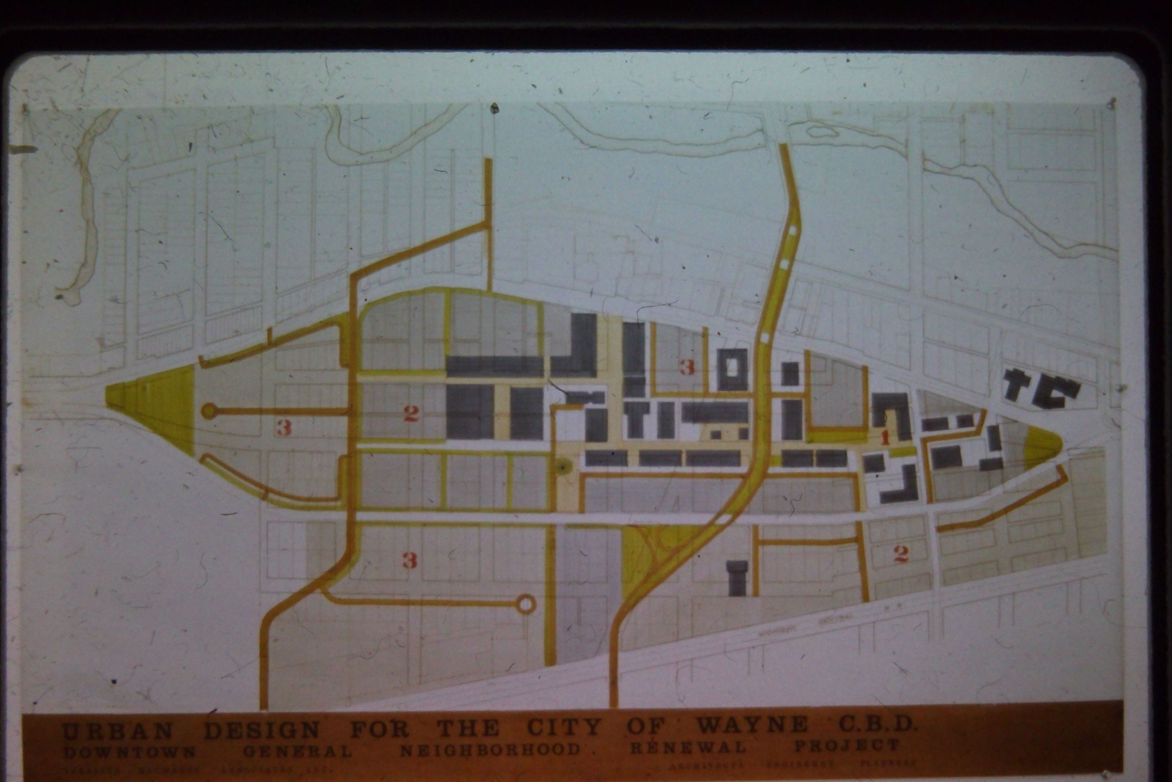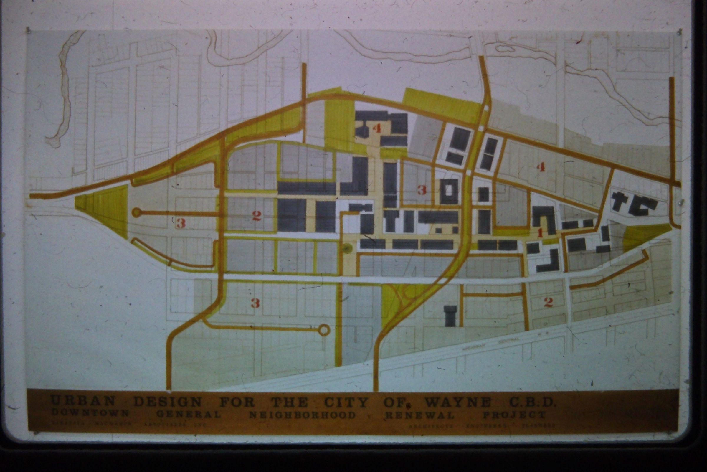 Urban Renewal Development concept map. Used for Urban Renewal purposes, shows proposed changes to roads