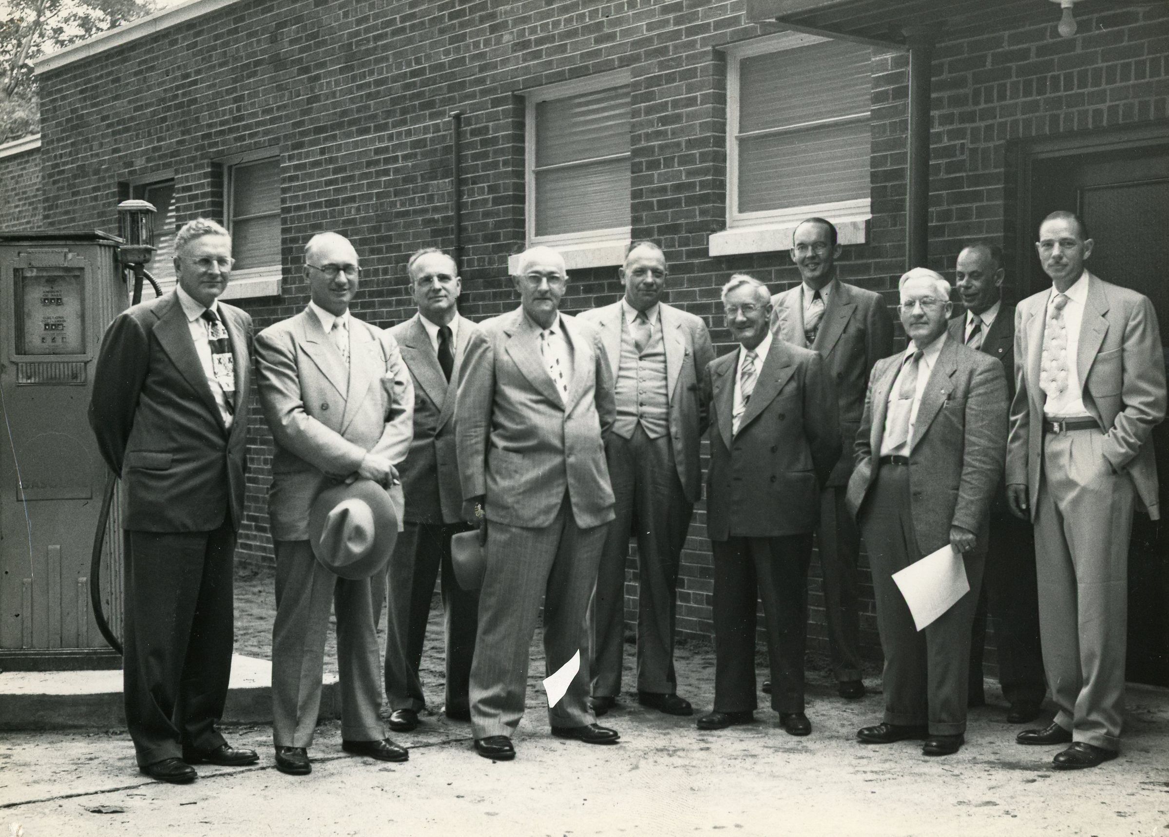 Inspection of New Police Building on June 19, 1950 by Former Council President Dietrich, Council President McCormick, Councilman Weyand, Councilman Harrison, Former Commissioner Atwood,Councilman Millar, Village Manager Arrowsmith, Councilman Moon, Police Chief Knox and Former Commissioner Howard Stein.Cataloged By