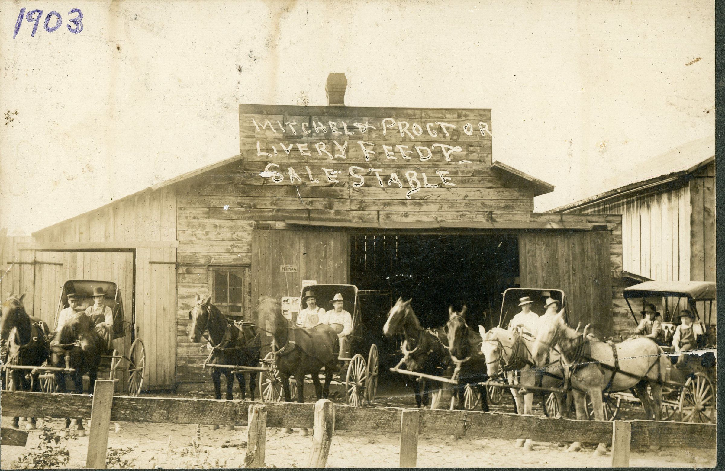 Mitchel & Proctor Livery Feed and Sale Stable. Taken in Wayne, 1903.