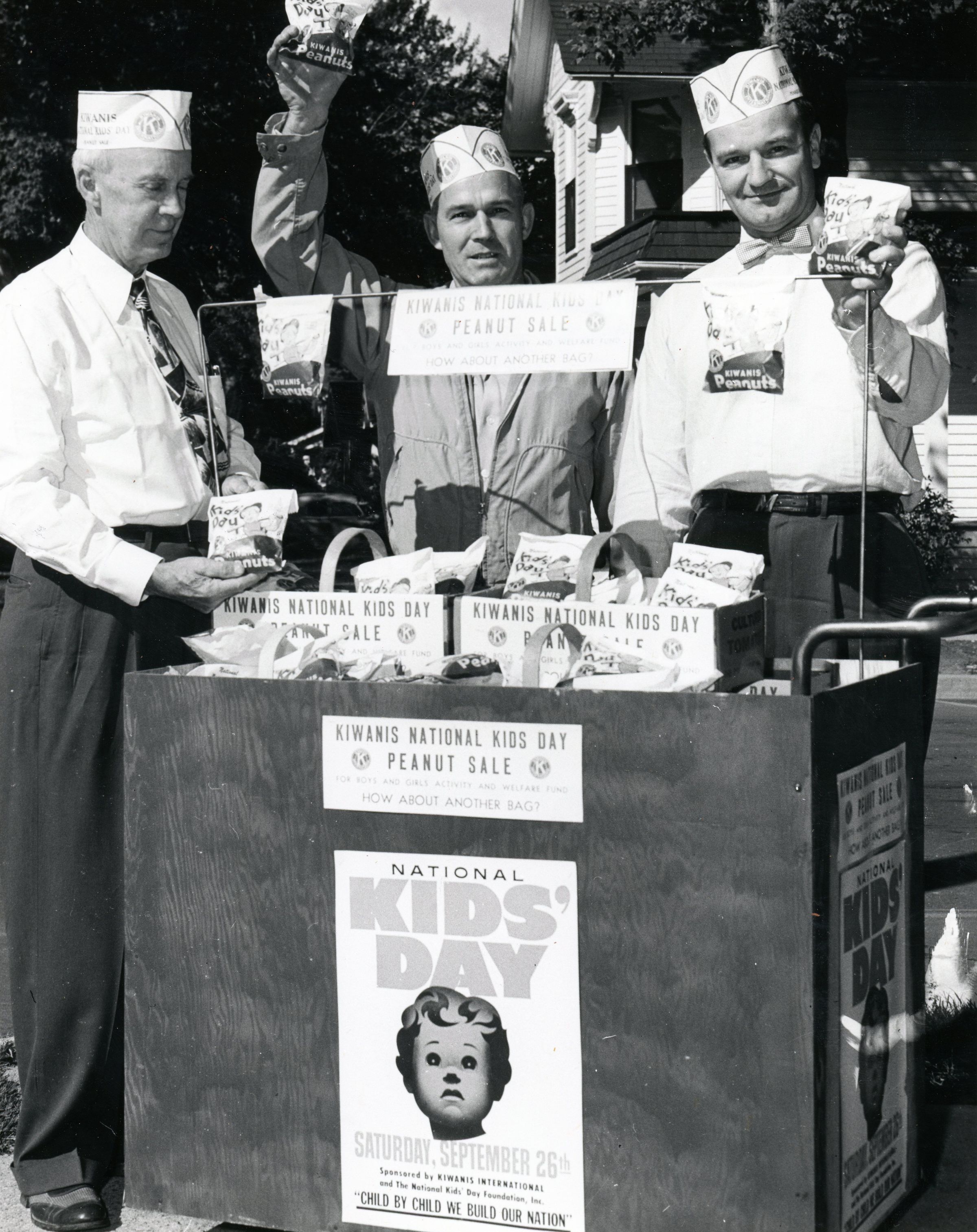 Peanut Sale on Newberry and Park. House behind is Wallace House. (L-R) Clarence Ladd, Clinton Whitney, Roy Meier
