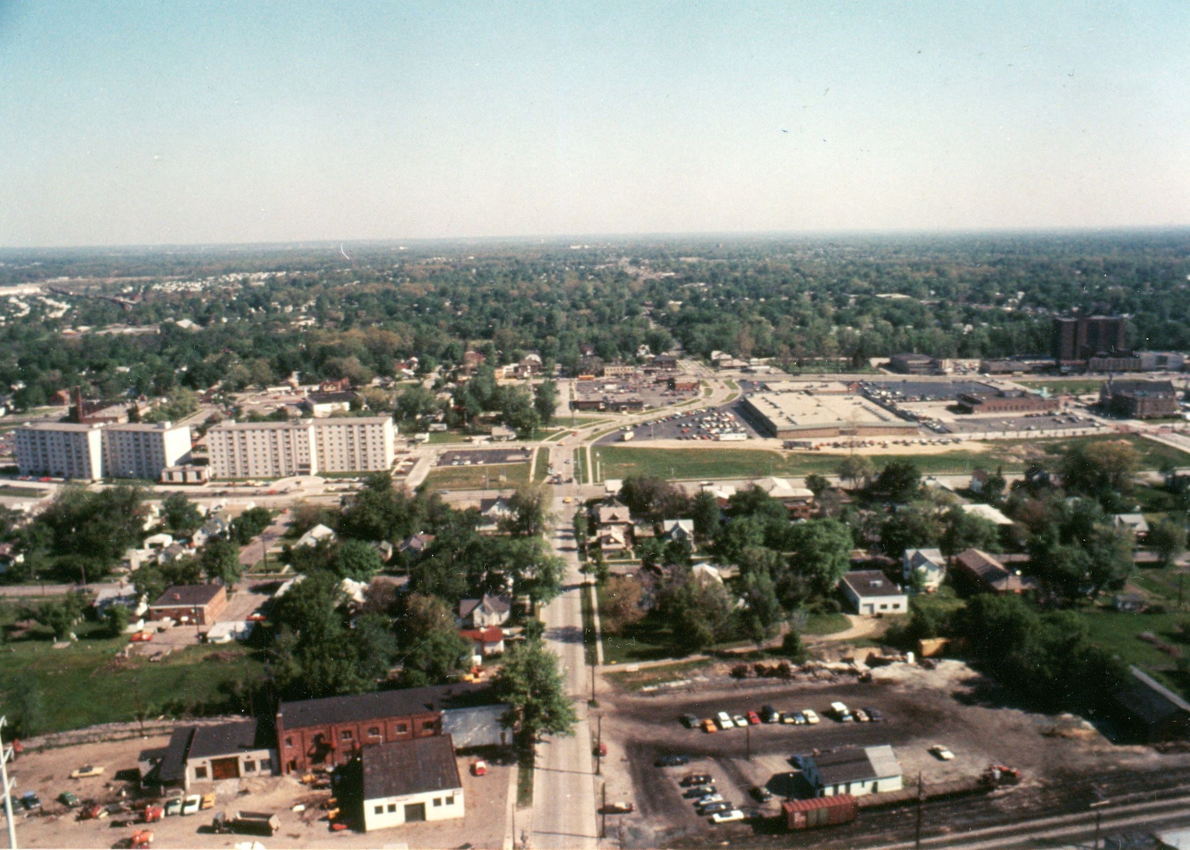 Elizabeth Street looking north from Tracks. Westchester Towers on left. Former Prouty and Glass building at bottom left, bottom right old train depot.Cataloged By