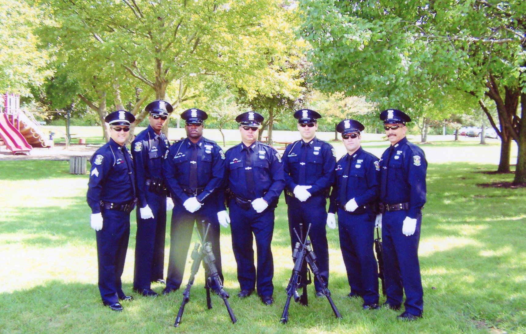 From left to right: Sgt. Bruce Wolfgram, Officer Terence Springer, Officer Finley Carter, Officer Charles Kubinski, Unknown Officer, Officer Randolph and Offer Terry Webb at Sept 11 Memorial on Sept 11 ,2011.Cataloged By