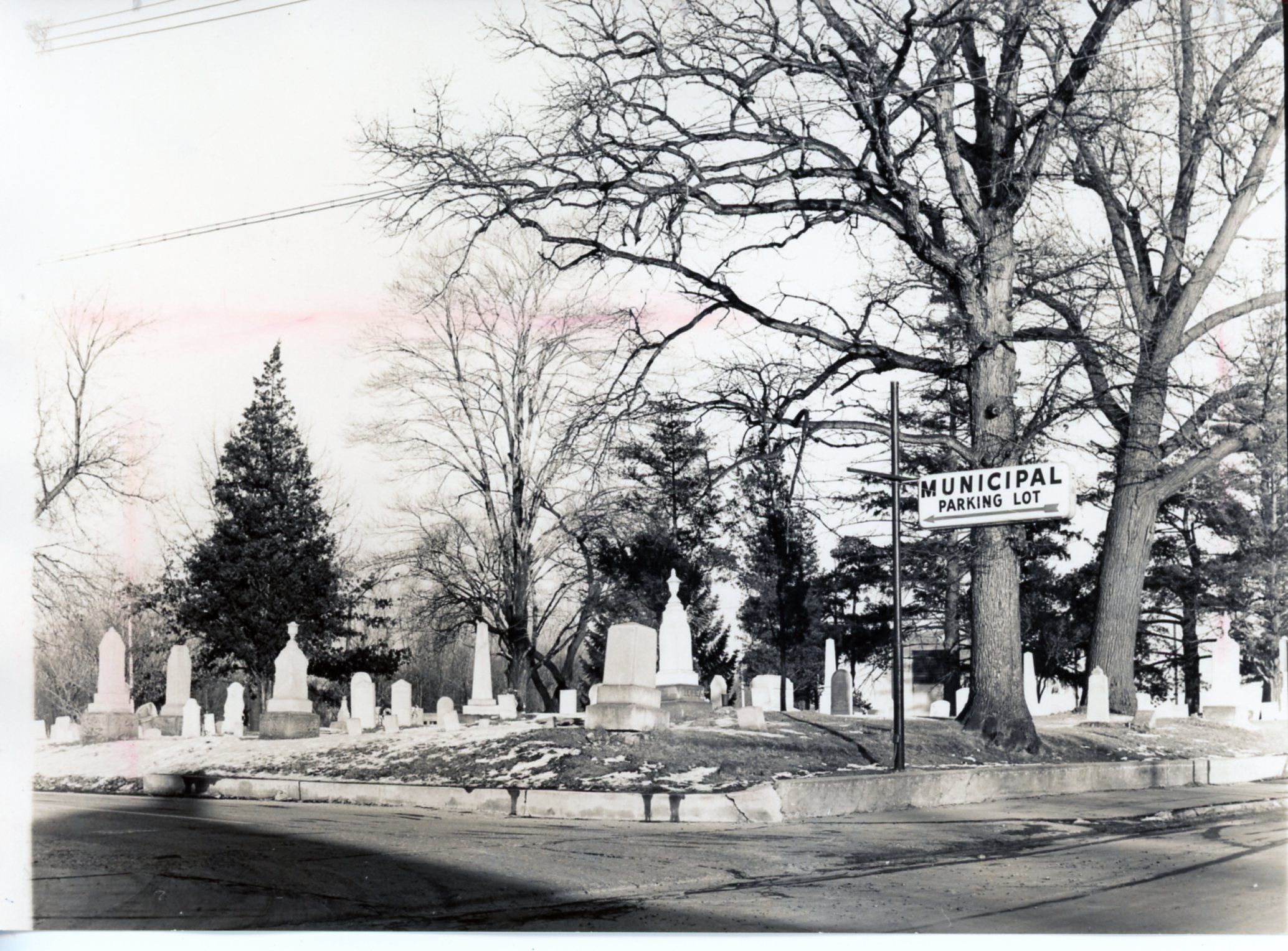 Old Wayne Cemetery on Mich Ave just west of State-Wayne Theatre. First burial in 1834- closed to further burials in 1918. Eagle photo, Dec 30, 1960