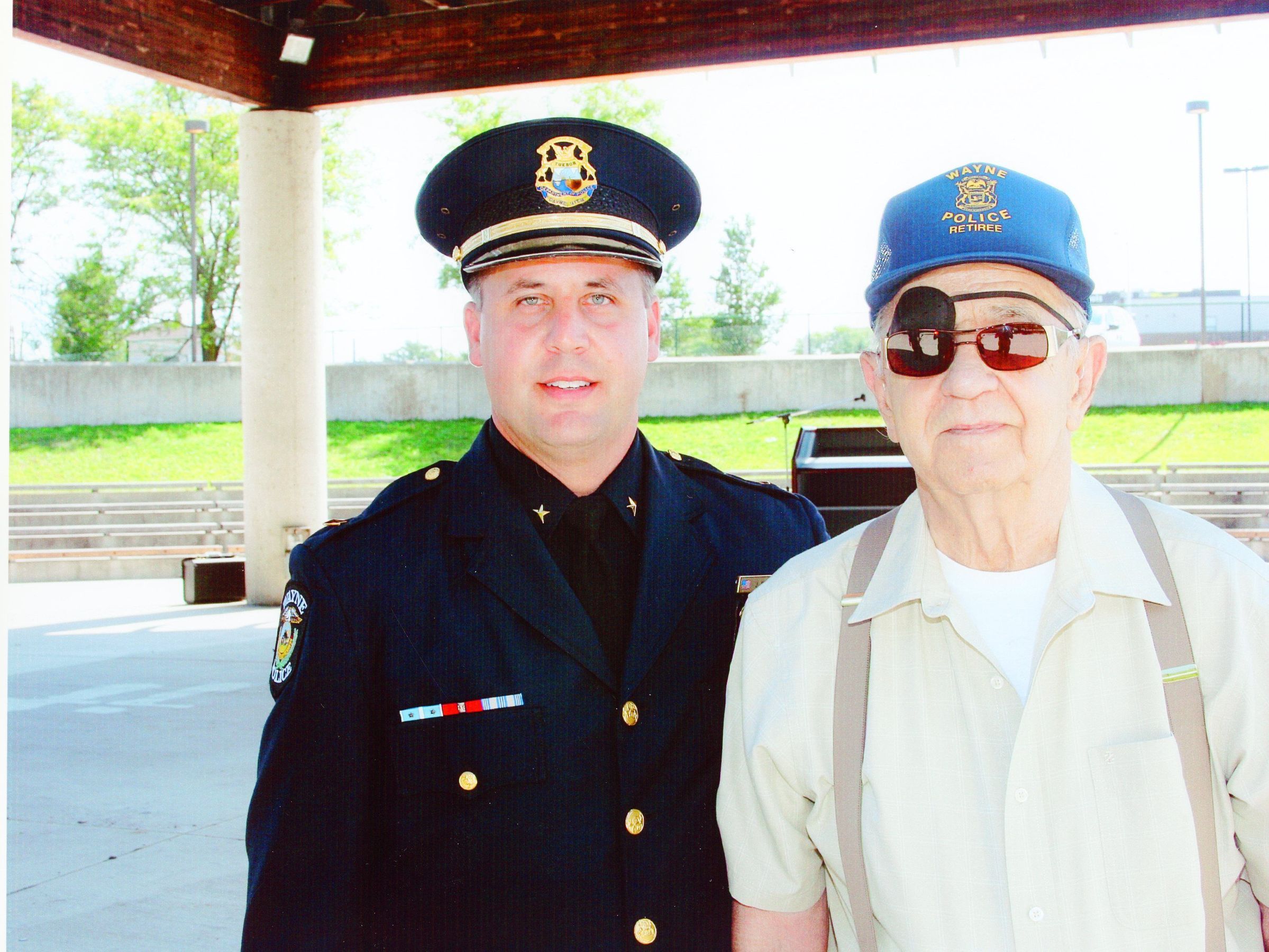 Wayne Police Chief Jason Wright and Retired Lt. Stan Sak at Goudy Park Amphitheater on Wayne Rd. This picture was taken on September 11, 2011.Cataloged By