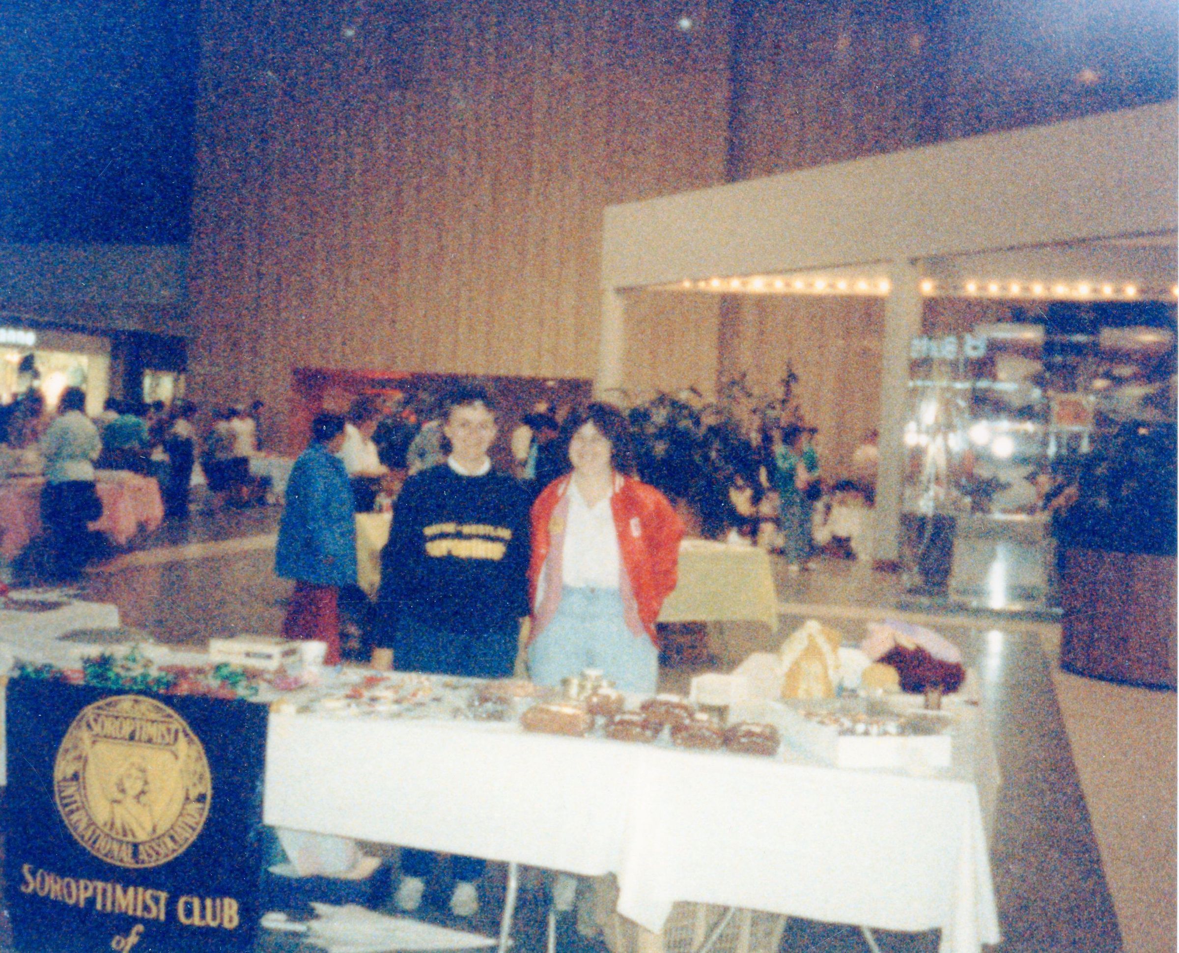 Soroptimists. Doris Nall and Donna McEachern selling baked goods at westland mall
