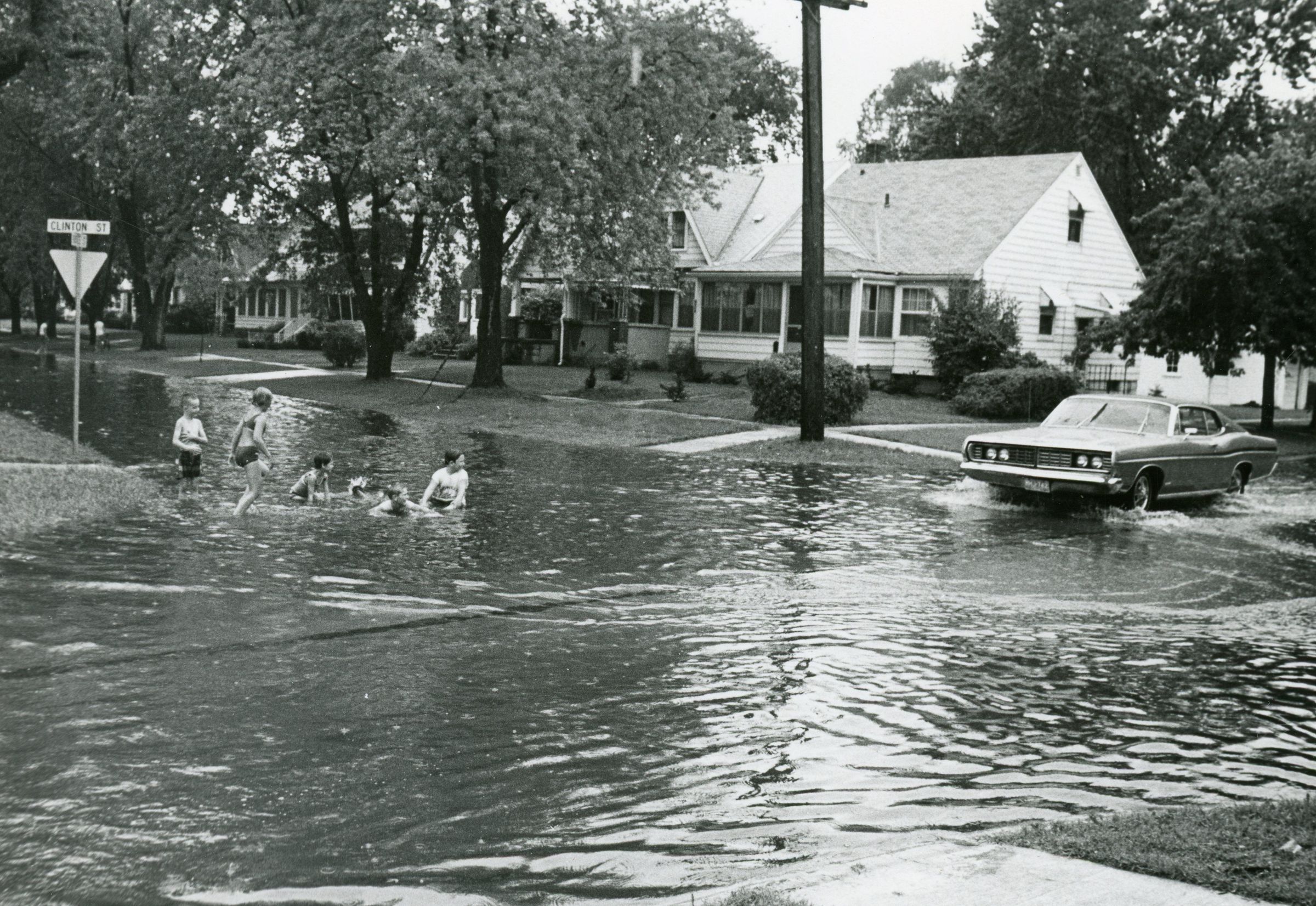 Clinton Street Flood August 20, 1970. Eagle Photo. Corner of Clinton and Biddle.
