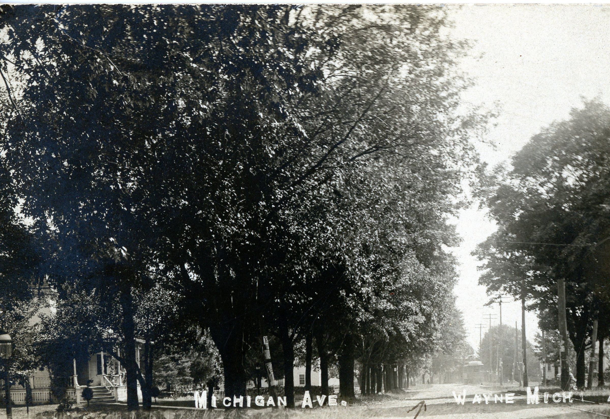 Michigan at Howe. 1906. House on left is Bunting home, South side just east of gas station at SE corner Michigan and Howe. Looking West.