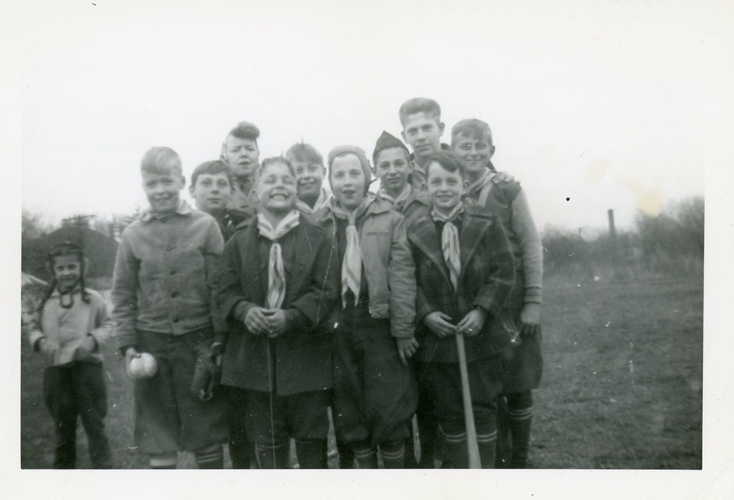 Cub Scout Den I, From Left to Right: Margo Fisher, Tom Zimmerman, Carl Klopshinske, Lillian Zimmerman (Den Mother), Oritze Gerbstadt, Wendell Zimmerman, Michael Fisher, Merill Stinghauer, Bill Johnson (Den Chief), John Hoope, Ken Bissey. (All Pupils of Washington School)Cataloged By