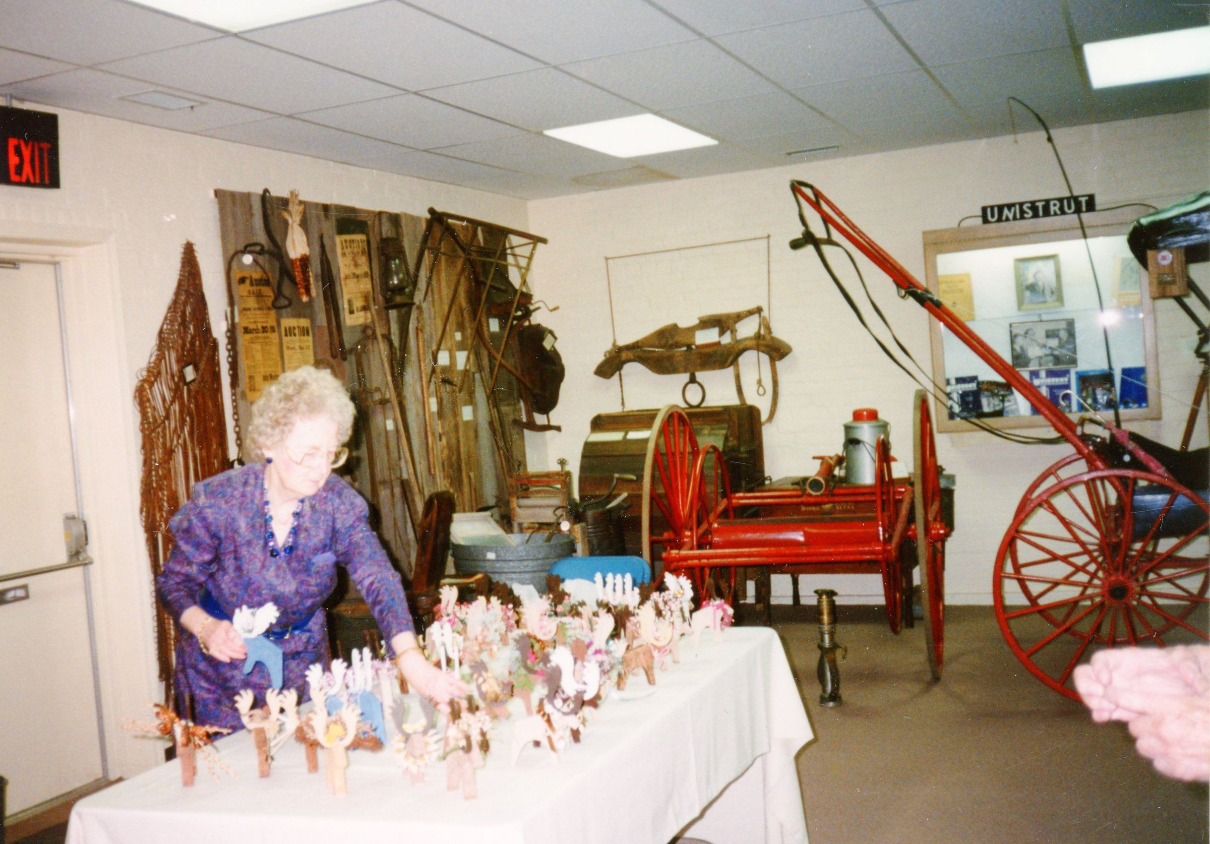 Garden Club Member, Catherine Crook at the Wayne Historical Museum on Wednesday, Sept 9th, 1990. Interior of Historical Museum visible.