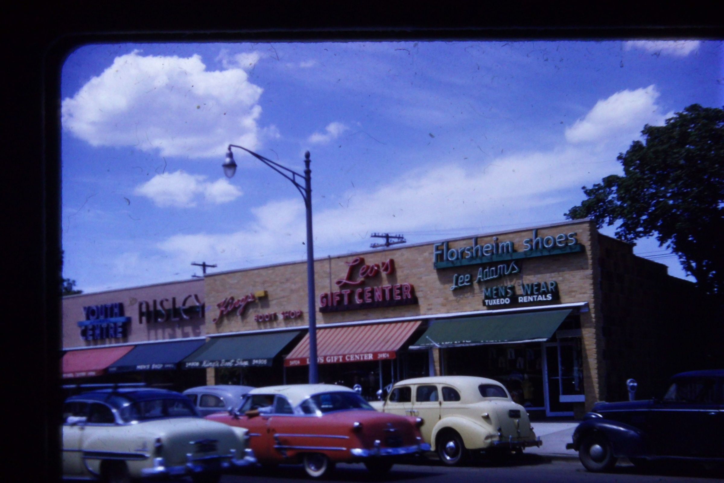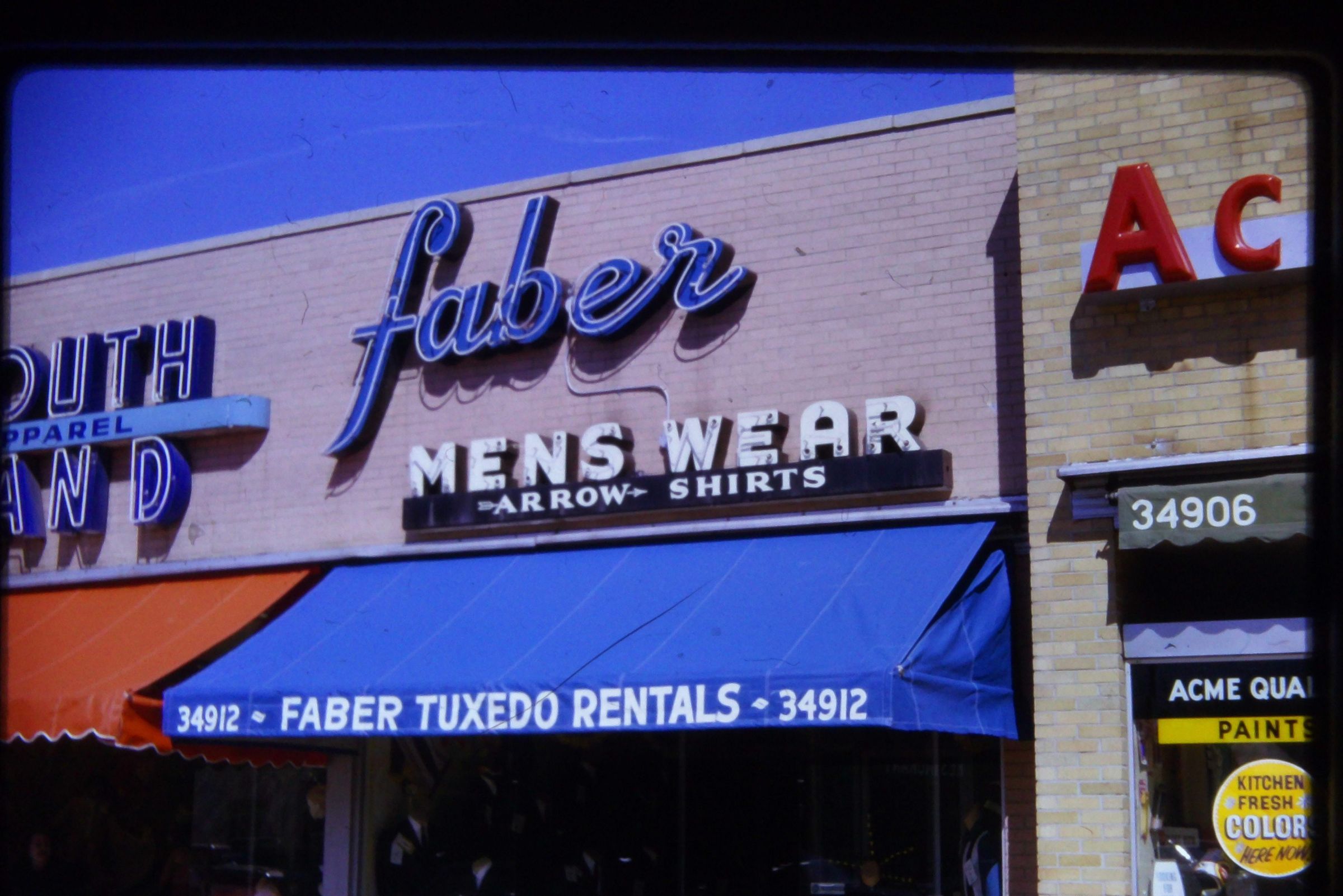 34918, 34914, 34912, 34906, 34904, 34902 Michigan. Storefronts. Former George Walker property. 34914 was Leo Tooley Ice Store 1929, 34914 and 34918 were one of Waynes first beer gardens 1933. In this picture is Juliet, Youth Centre Apparel, Nisley Mens Shop, Kings Boot Shop, Leos Gift Center, Florsheim Shoes, Lee Adams Menswear. Building still there as of 2024Cataloged By