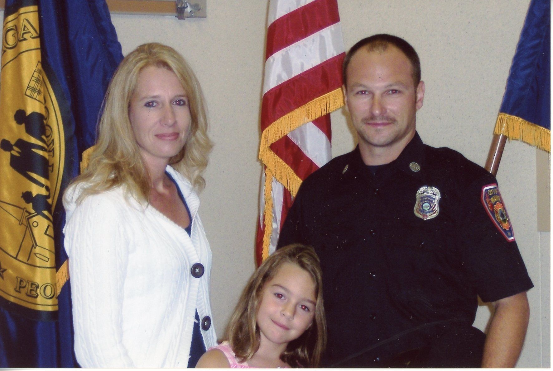 Firefighter J.Schneider, wife Roxann Schneider and little girl. Taken in 2008.