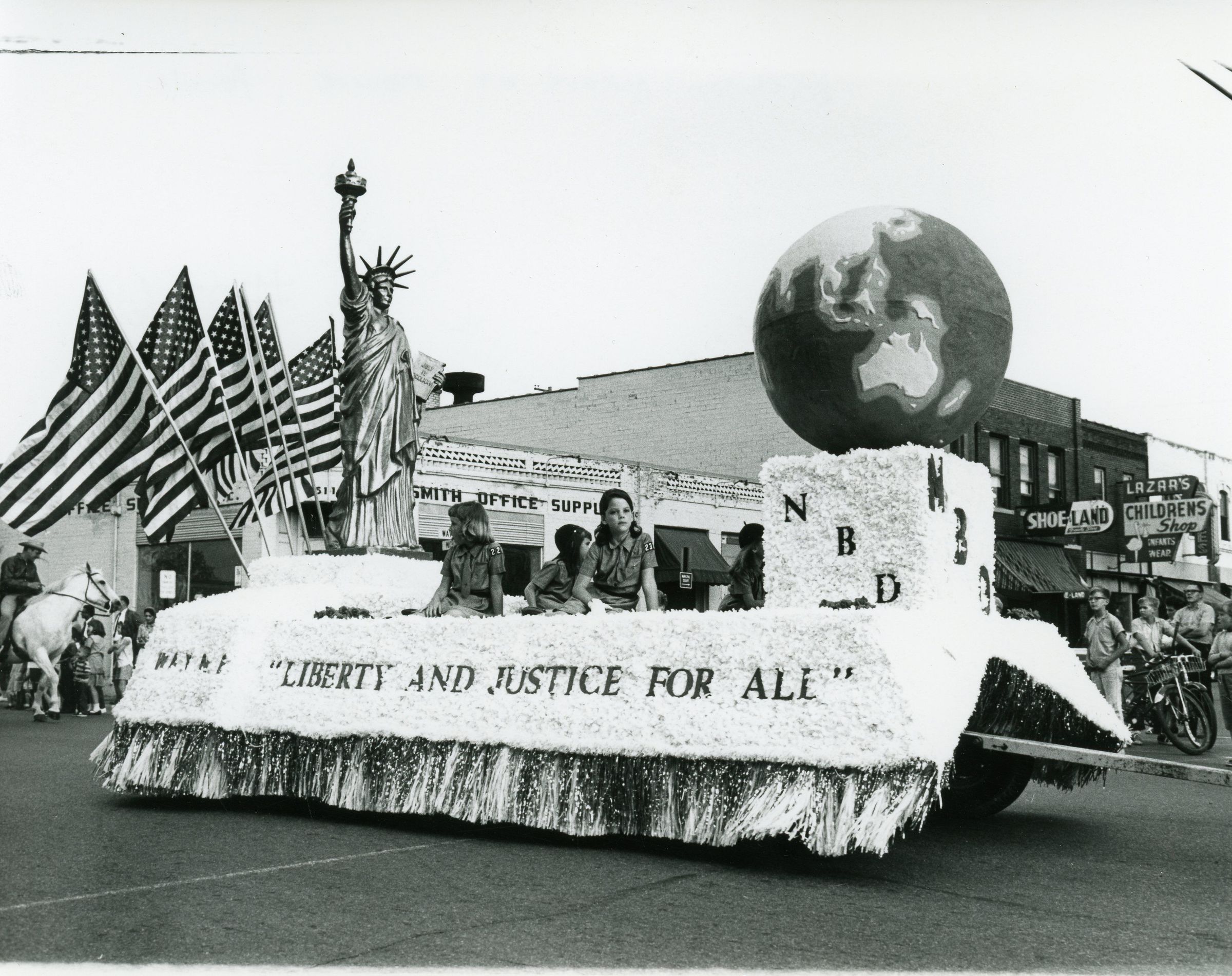 Parade June 14, 1965 - National Bank of Detroit Float. Looking SE down Monroe street from Michigan.