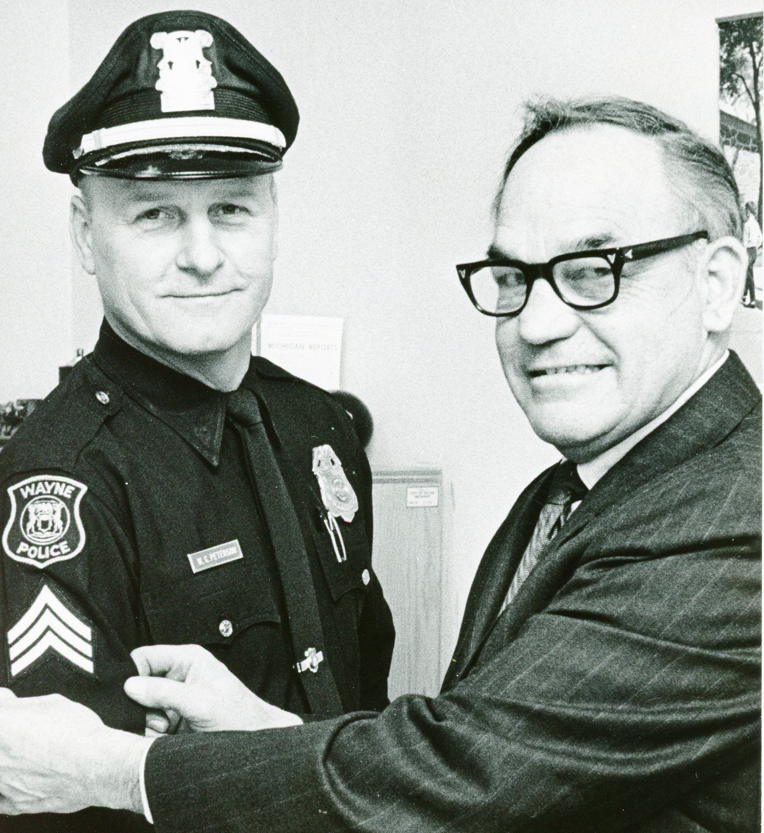 Wayne Police Officer Pete Peterson and Walter McGregor. Photo taken by Lothar E. Konietzko for the "Eagle" on Dec. 7, 1971.