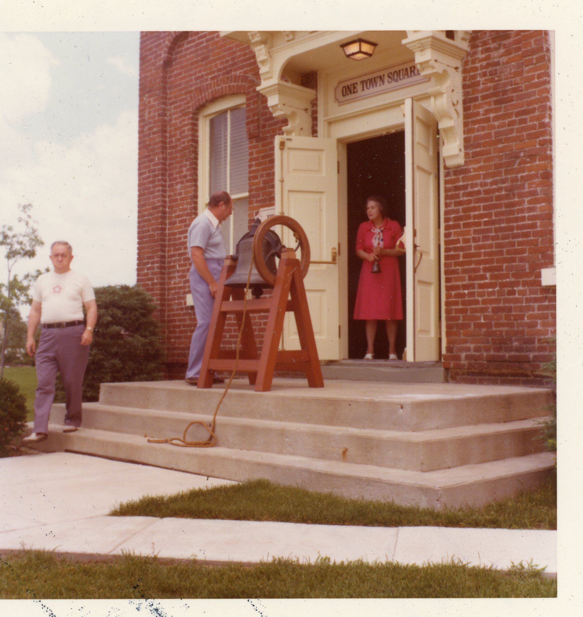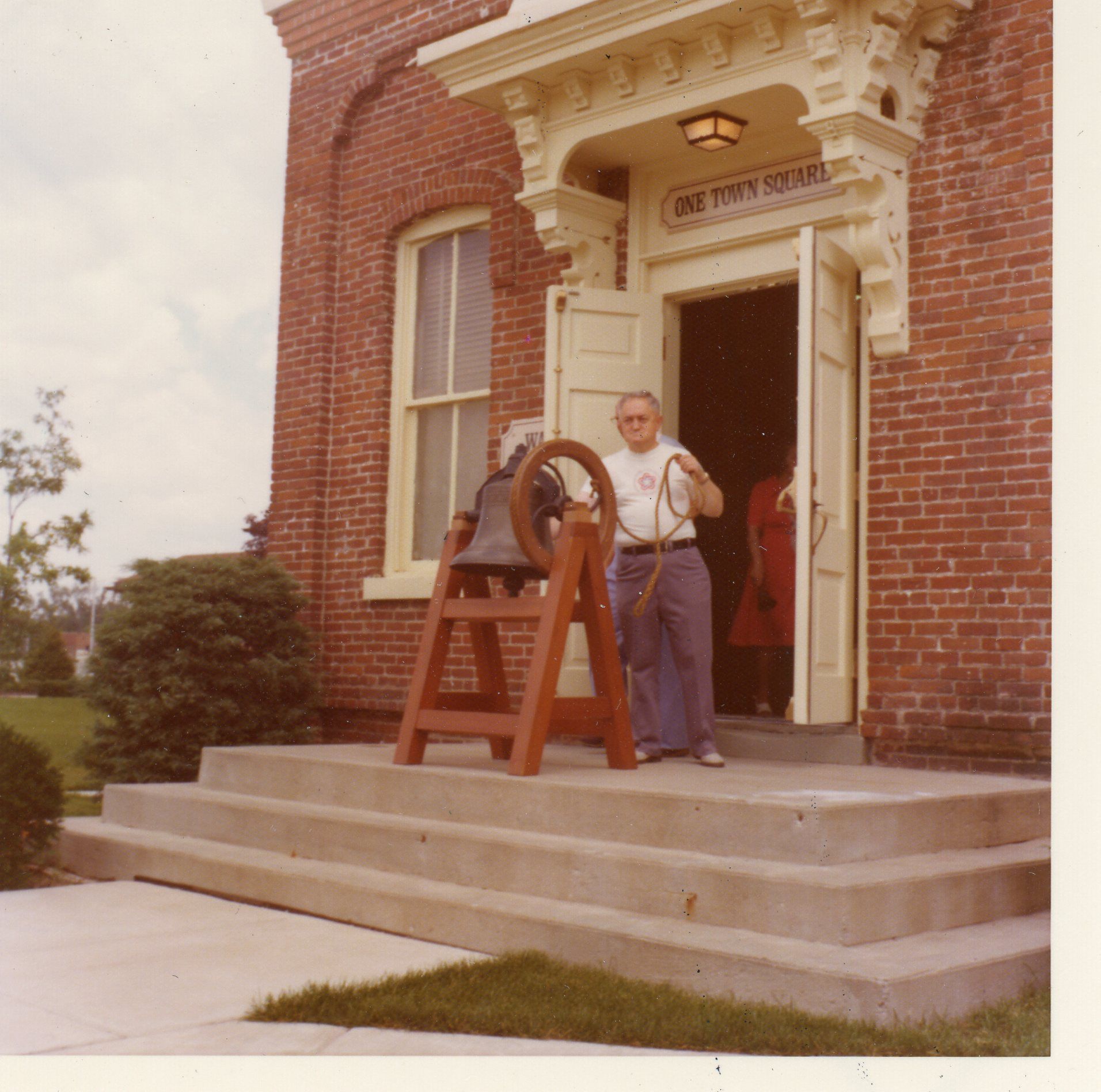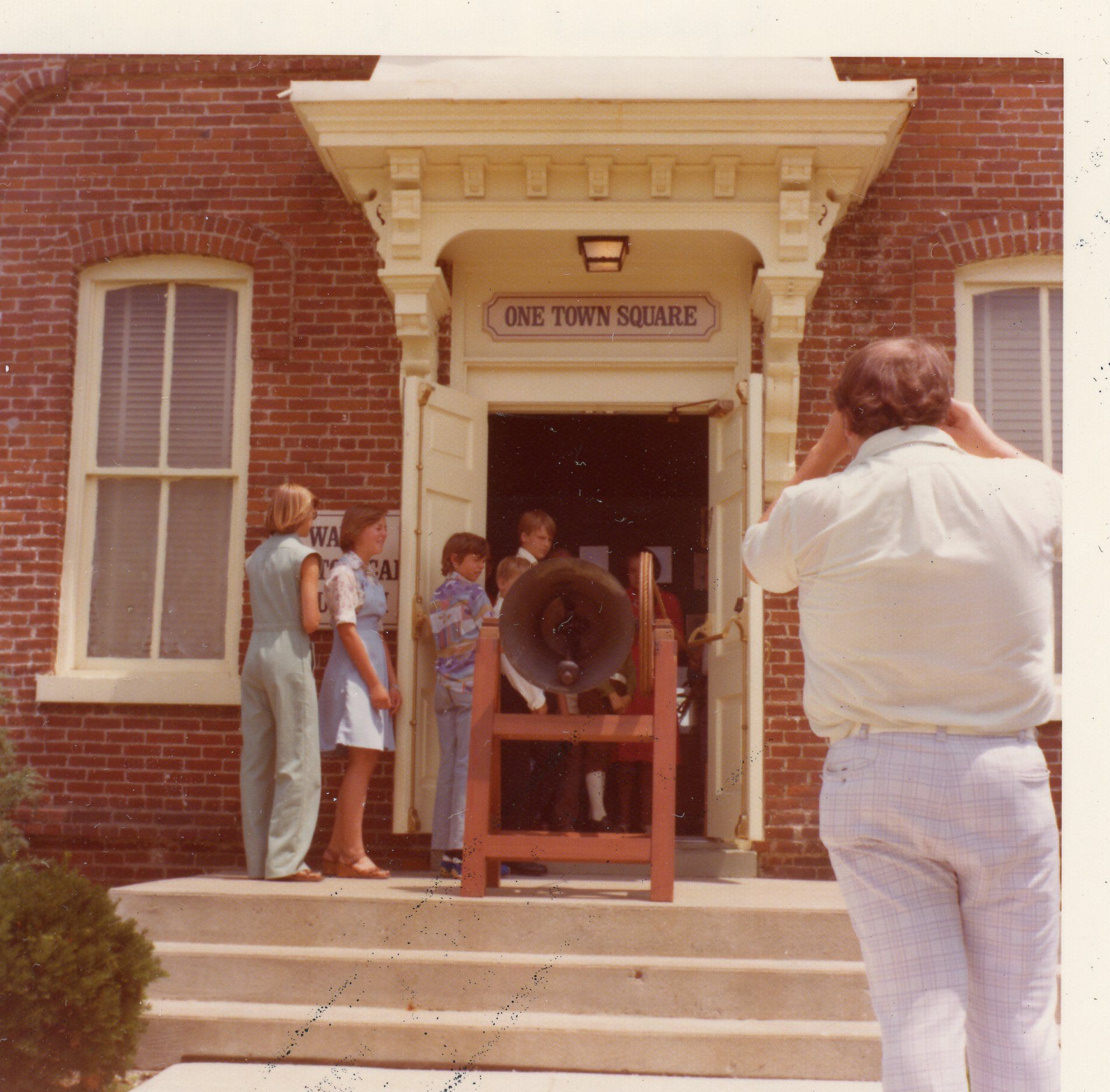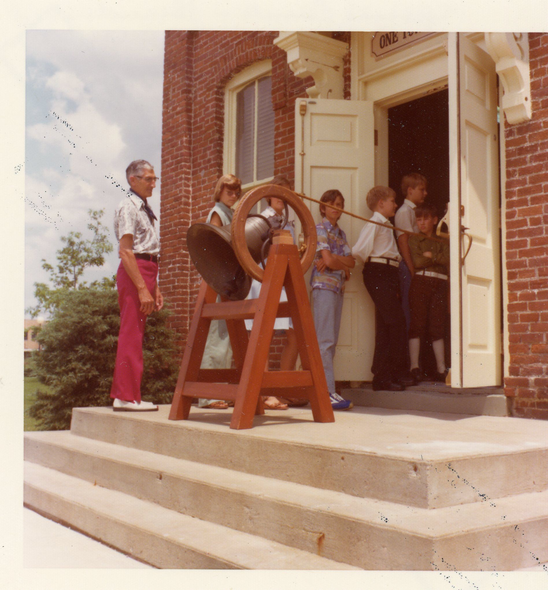 Ringing the old school bell at the museum. July 4, 1976 2pm for national bell ringing