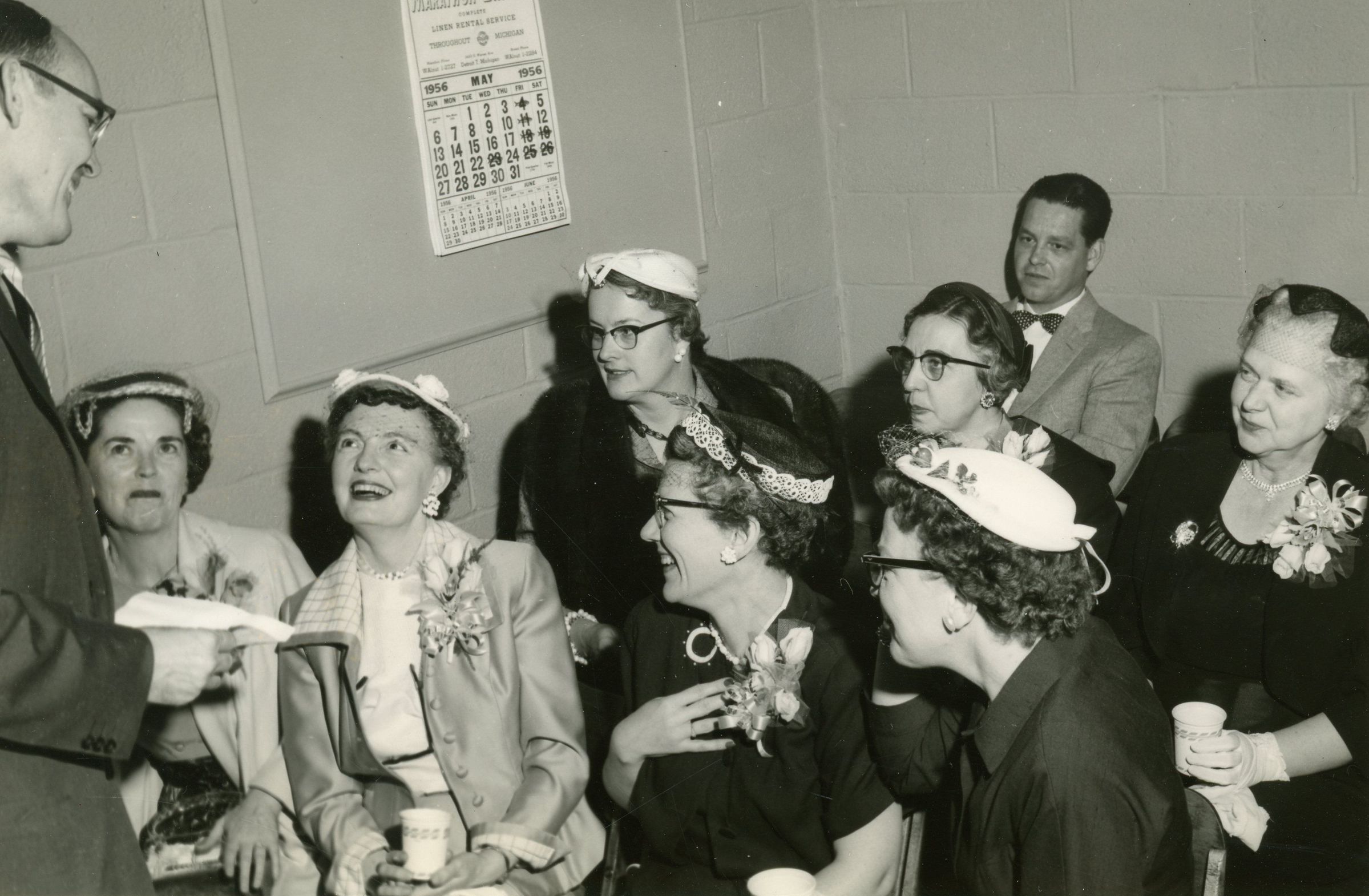 Walter Arrowsmith addresses ladies. Bessie Lents and Mrs Curtis in group. 1956