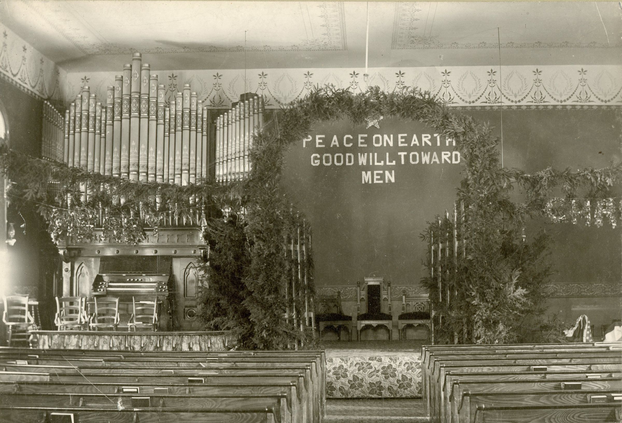 Christmas, 1898. Church decorated for Christmas by Mrs. Sarah Coy's Sunday school class