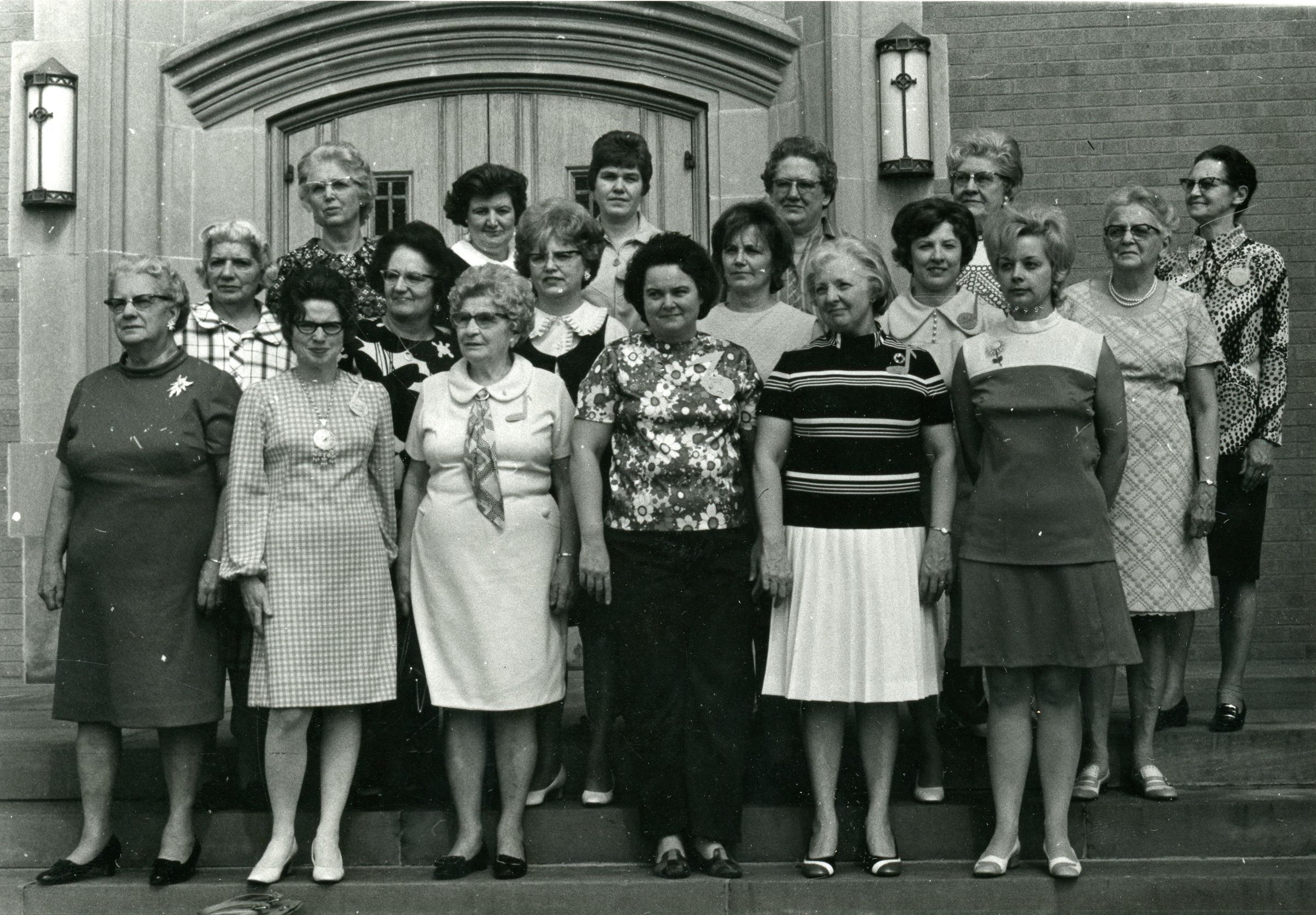 Methodist Church W.S.C.S Ex Board in Front Row: Glady Nelson, ?, Beulah Hudgins, Jeannine Klay, Dorothy Jacobs and Chris Shelly. 2nd Row: Maxine Monroe, Marion Williams, Elosie Roe, Grace Collier, Fran Clary and Esther Wallace. Third Row: Marjorie Palmater, Mae Fitch, Jackie Lewis, La Verne Ferguson, Mildred Bushaw and Ada Black.Cataloged By