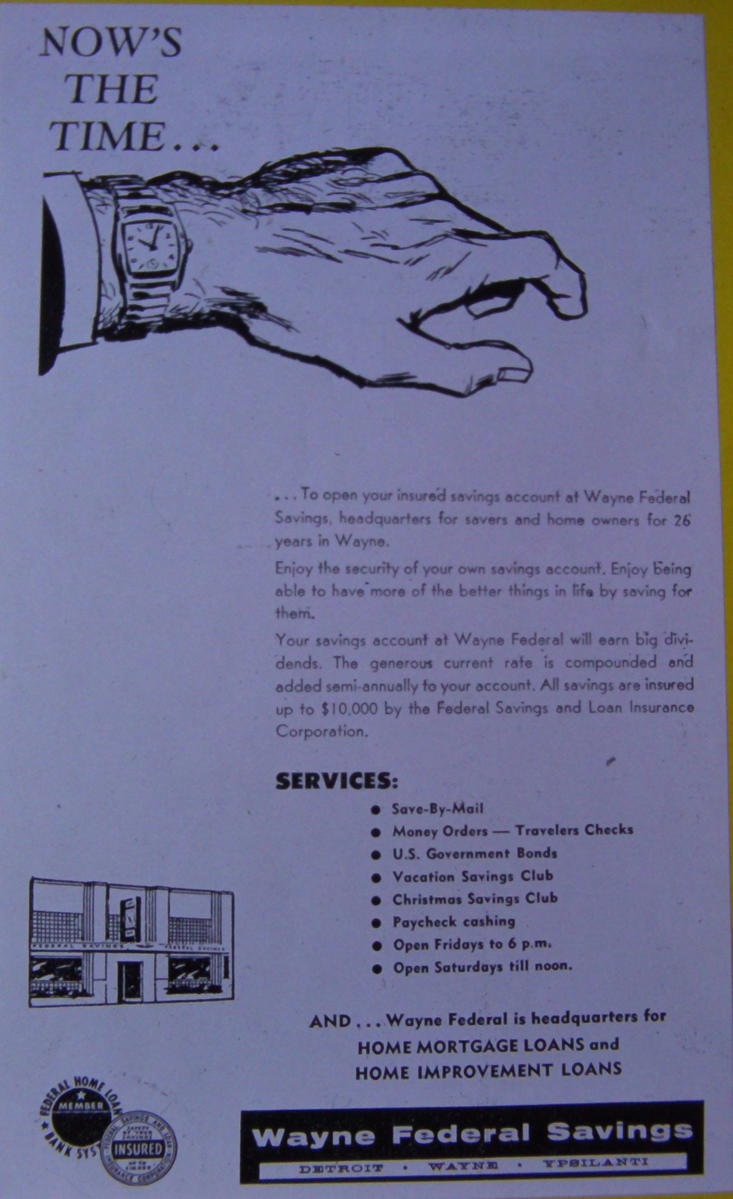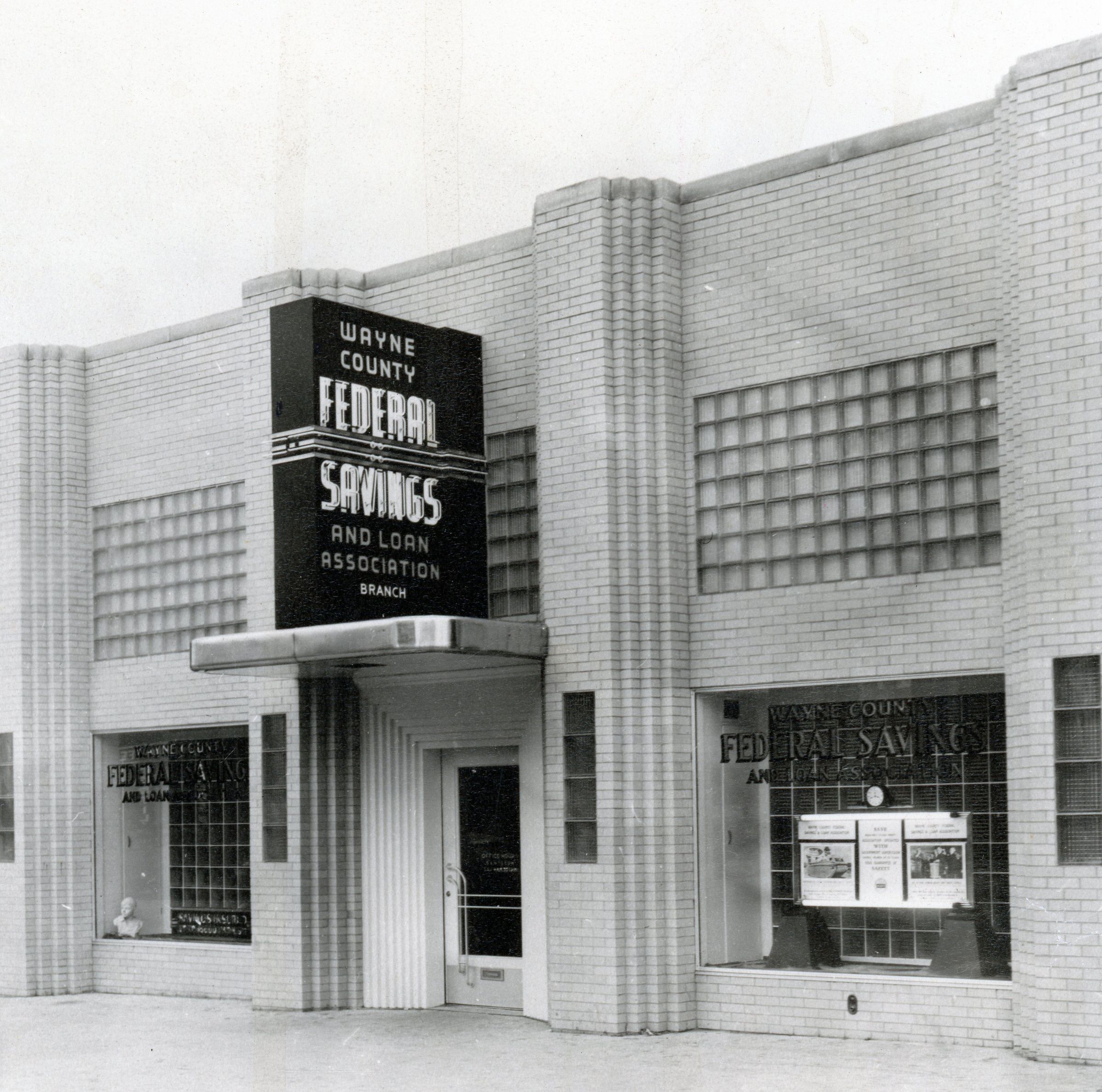 Exterior view. Wayne Co. Federal Savings & Loan. 35150 Michigan Ave., Wayne. When building was new- 1940