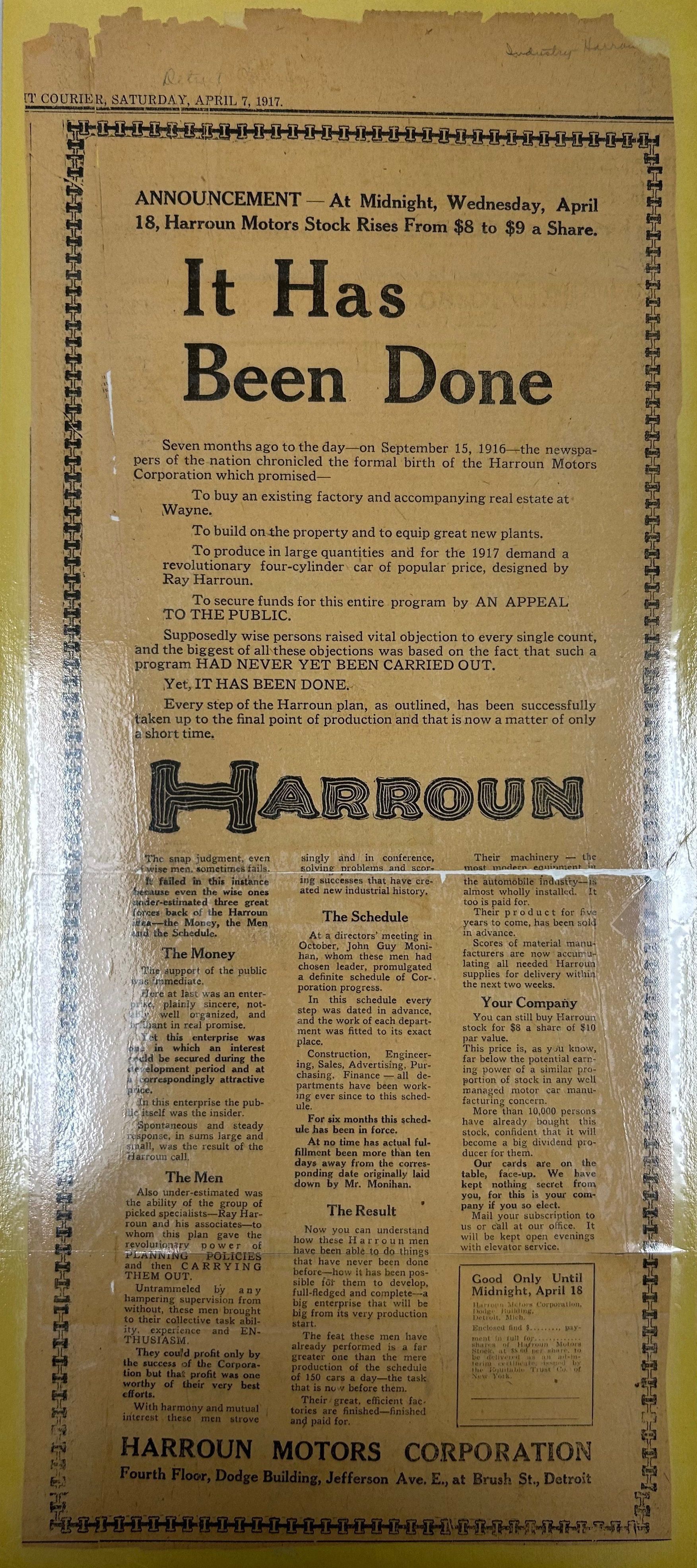 1917 It Has Been Done Harroun Motors Corporation