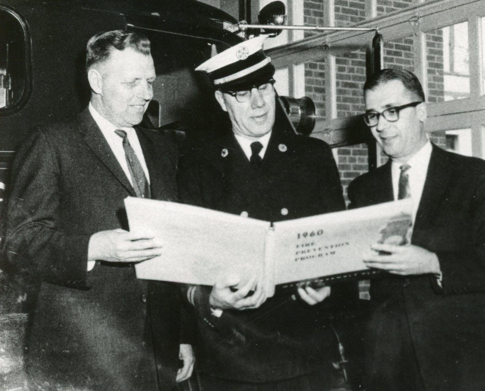 Hank Goudy meets with Ford safety officials. Joe Roberts (L), Hank Goudy (Center), Ford industrial relations rep.Cataloged By