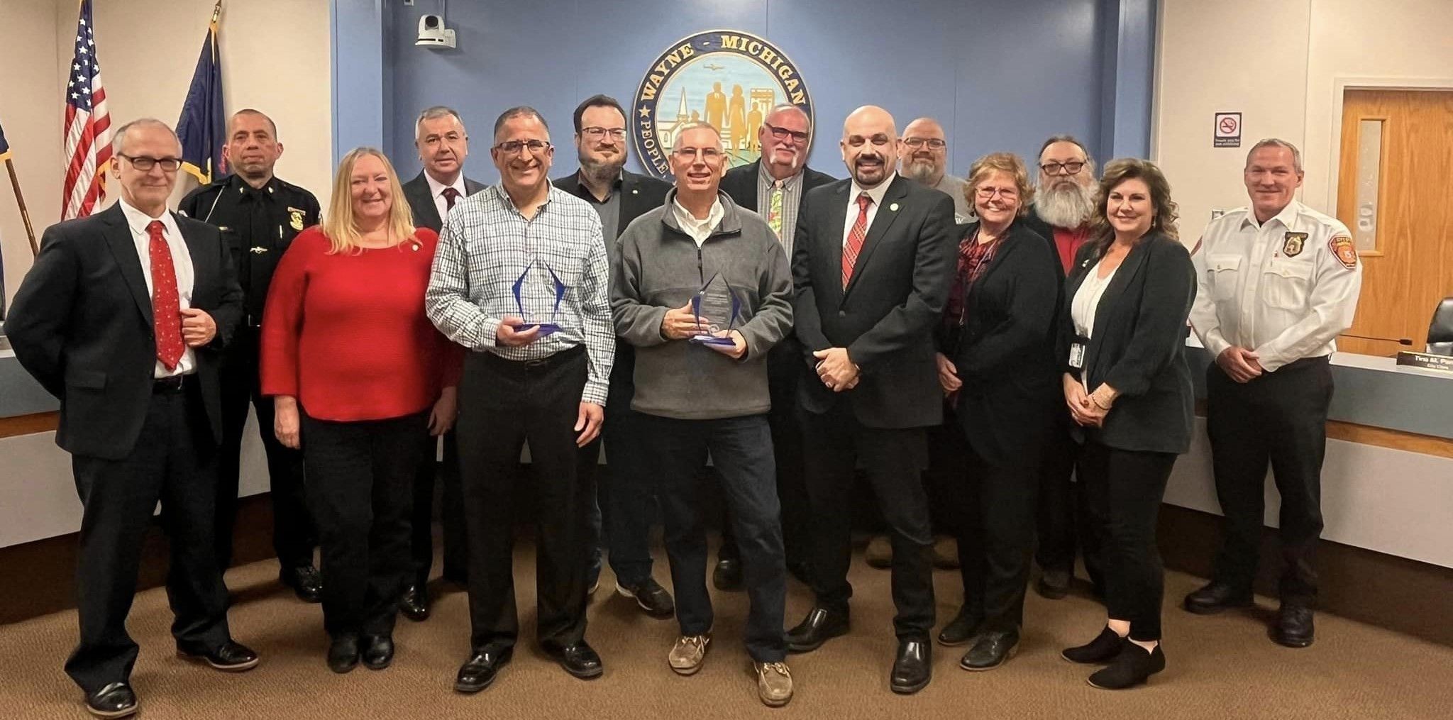 Retirement of Ed Queen (DPW) and Mike Buiten (Building and engineering). Dec. 2023. Building and Engineering Director Mike Buiten and Department of Public Works Assistant Director Ed Queen. Director Buiten began his career with the City of Wayne in 1998 and Assistant Director Queen began his career with the City of Wayne in 1996.Cataloged By