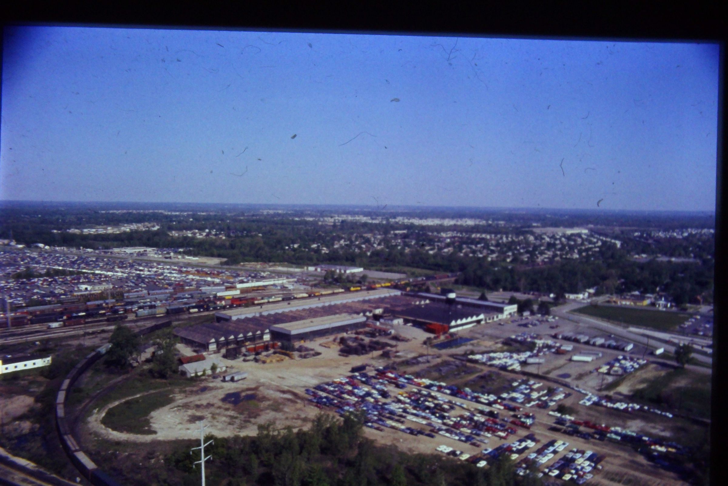 Aerial over Gar Wood Plant, looking NW. 1970s