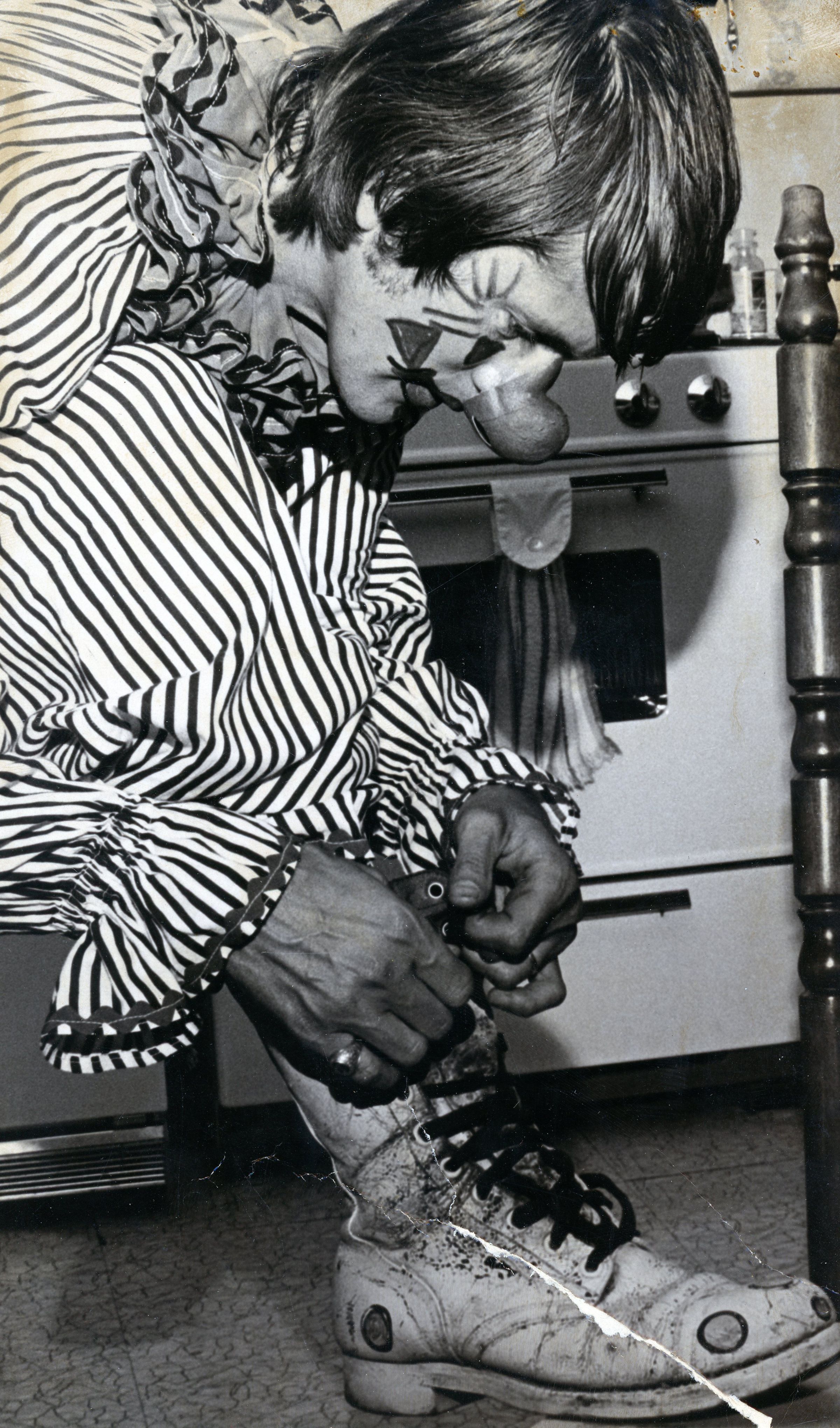 Clown Tying his Shoes