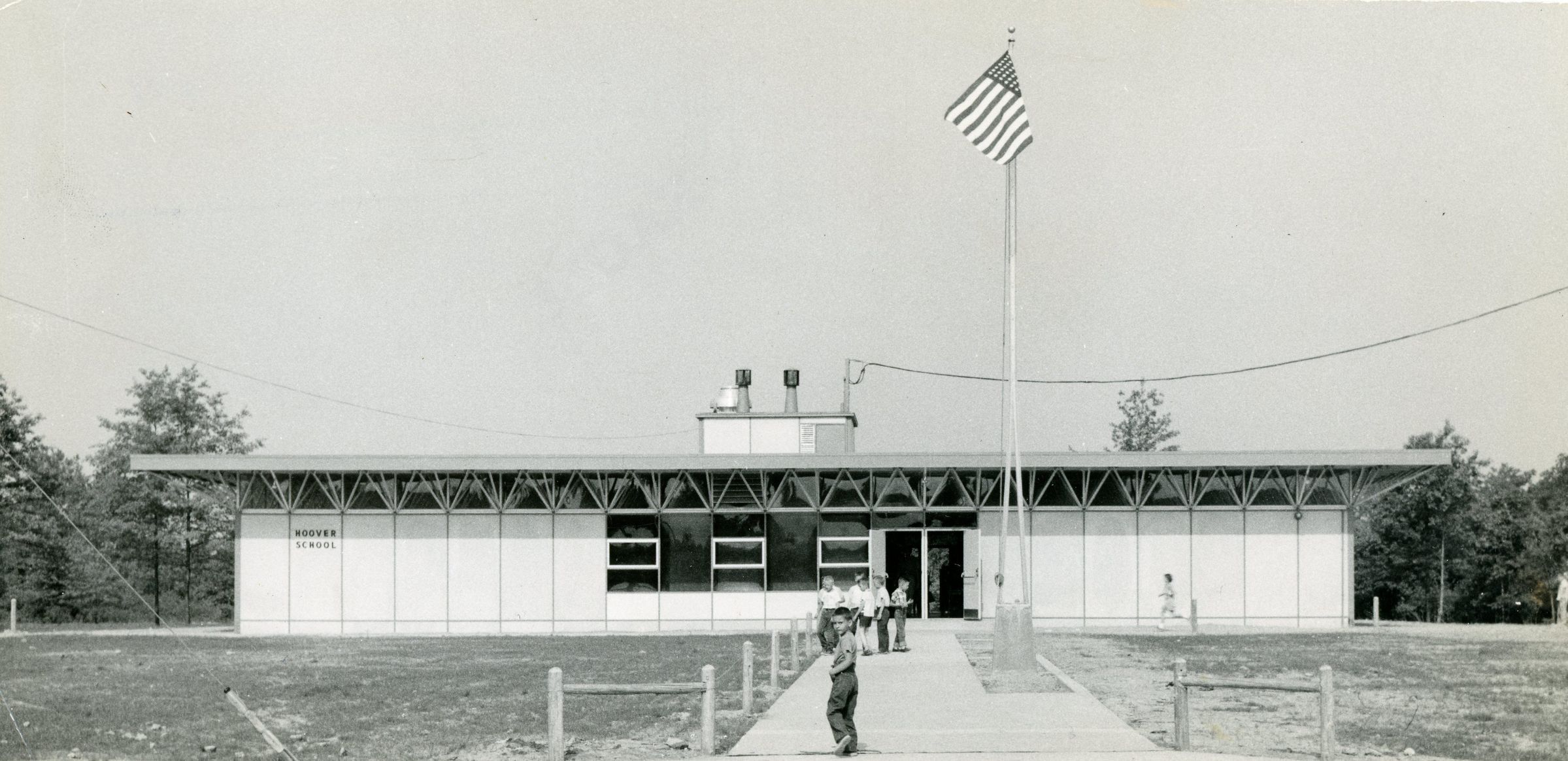 Hoover Elementary. Designed and built by Unistrut in 1956. On 4th near Currier. Building torn down and replaced.