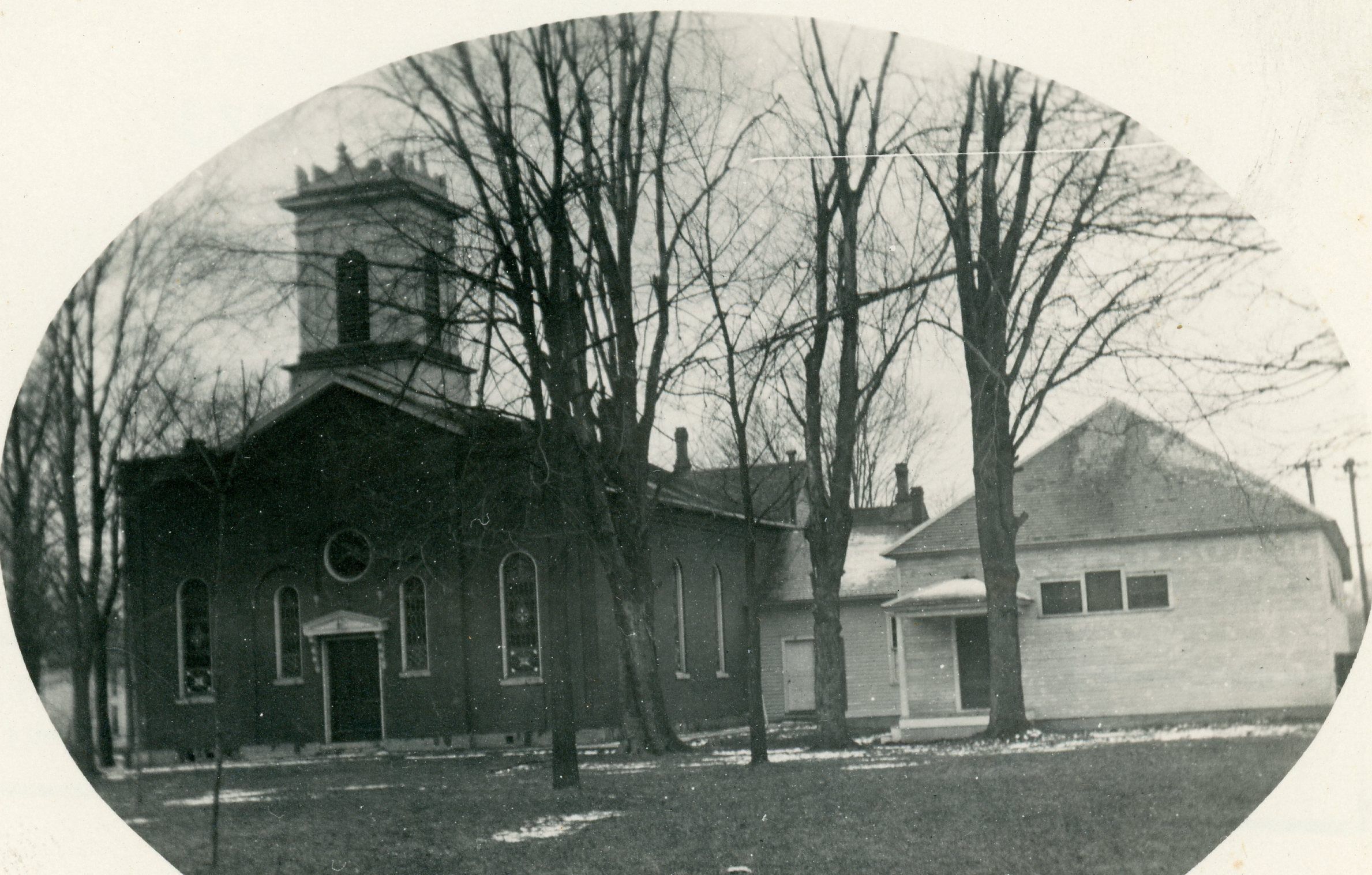Built 1862. Sunday School building at side. Picture taken about 1920.