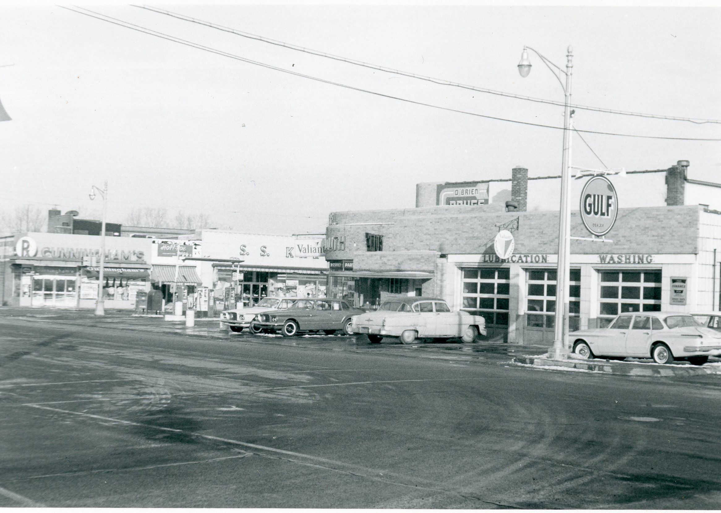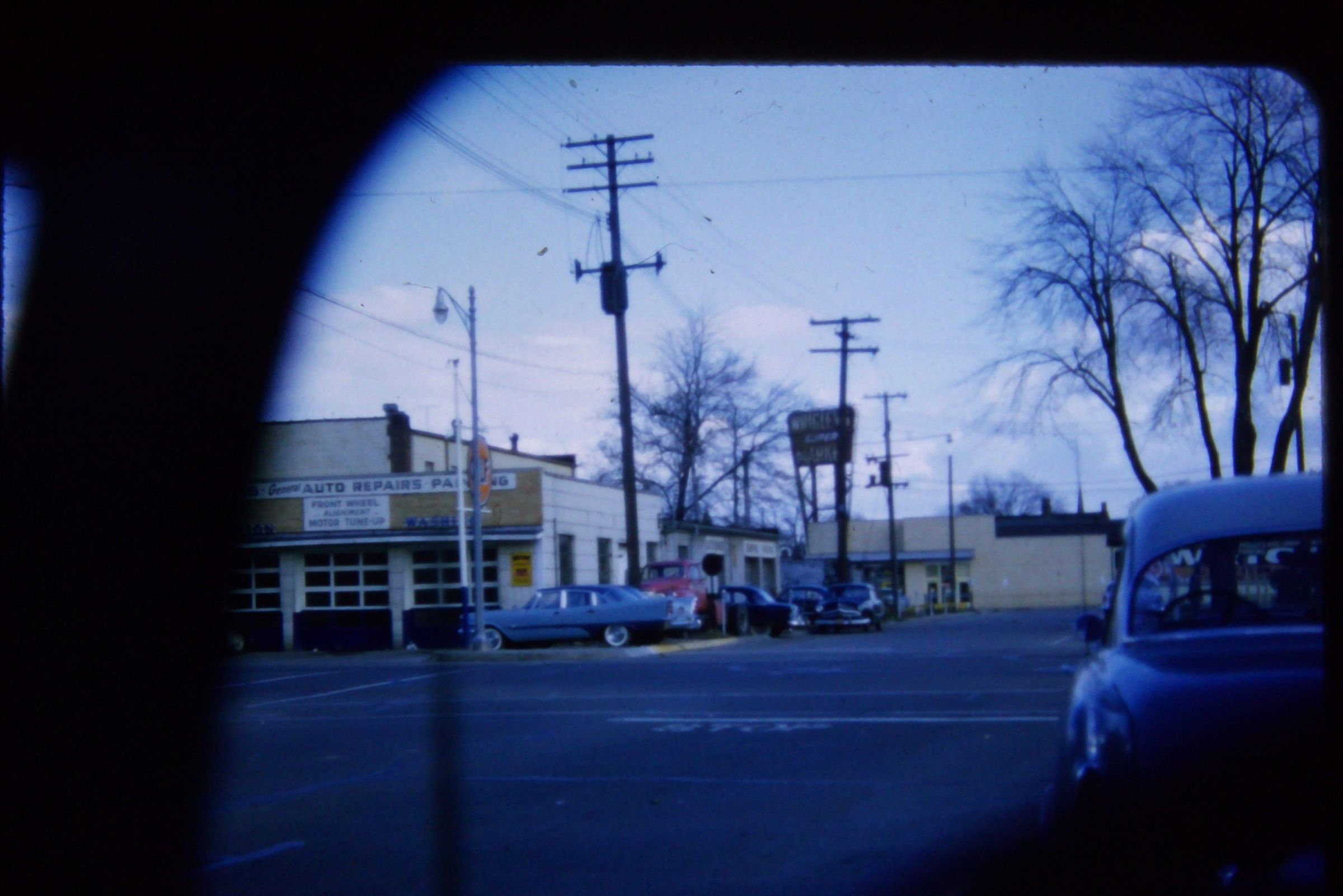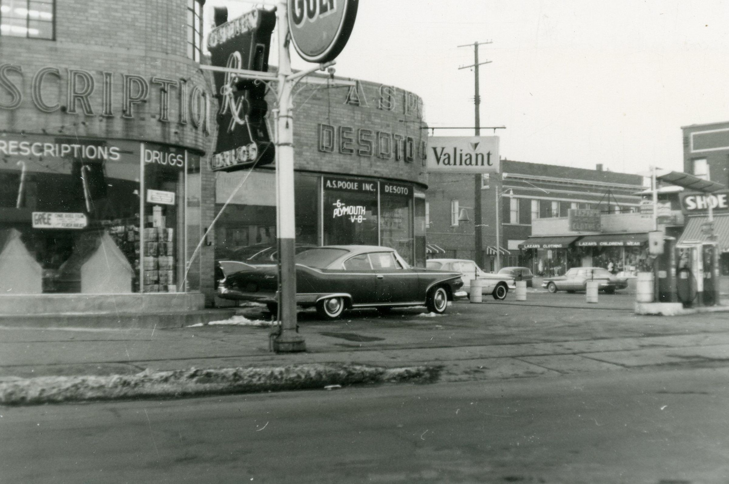 35021 Michigan - SE corner Michigan and Wayne Road. Replaced the Streetcar depot. A.S. Pooles Gulf station Desoto Plymouth Dealership. c. 1957. . This building torn down for urban renewal, replaced with National Bank of Detroit/Chase bank.Cataloged By