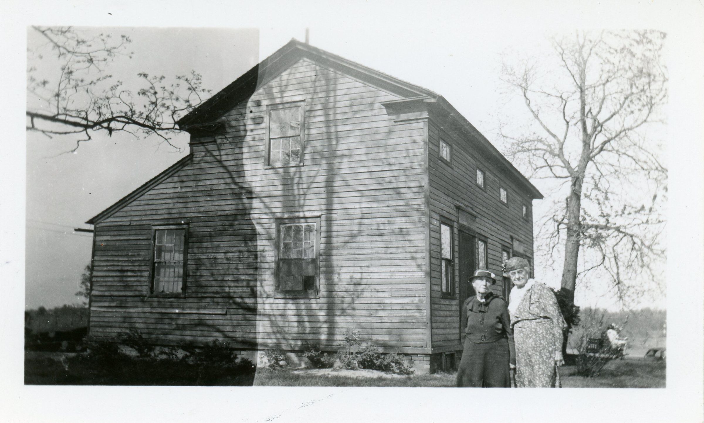 Olive Chubb Barnard and Ella Hood standing in front of the Old Chubb farmhouse near Hix on Warren.