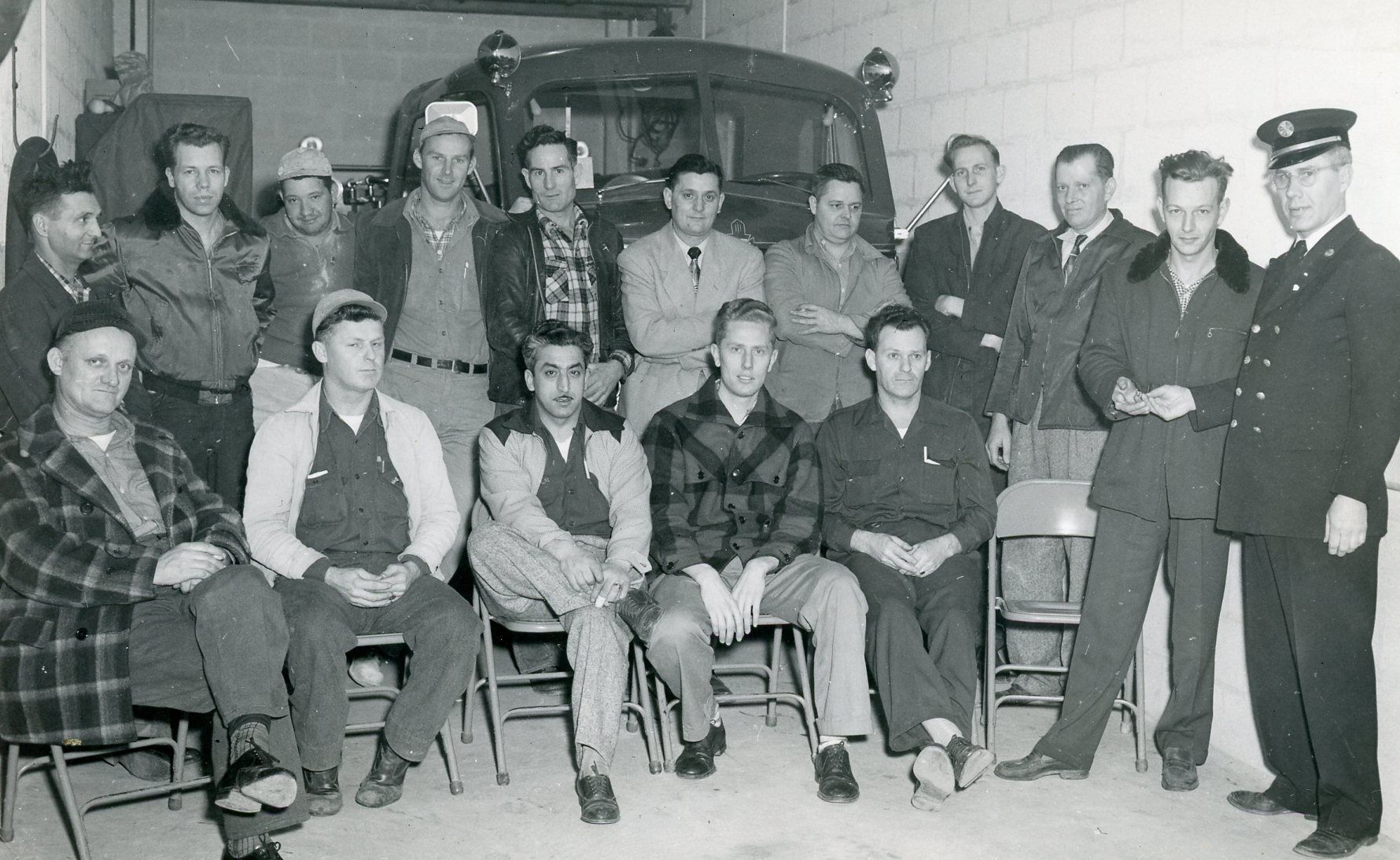 Volunteer firemen from Station 2 March 1953. Chief Goudy on right