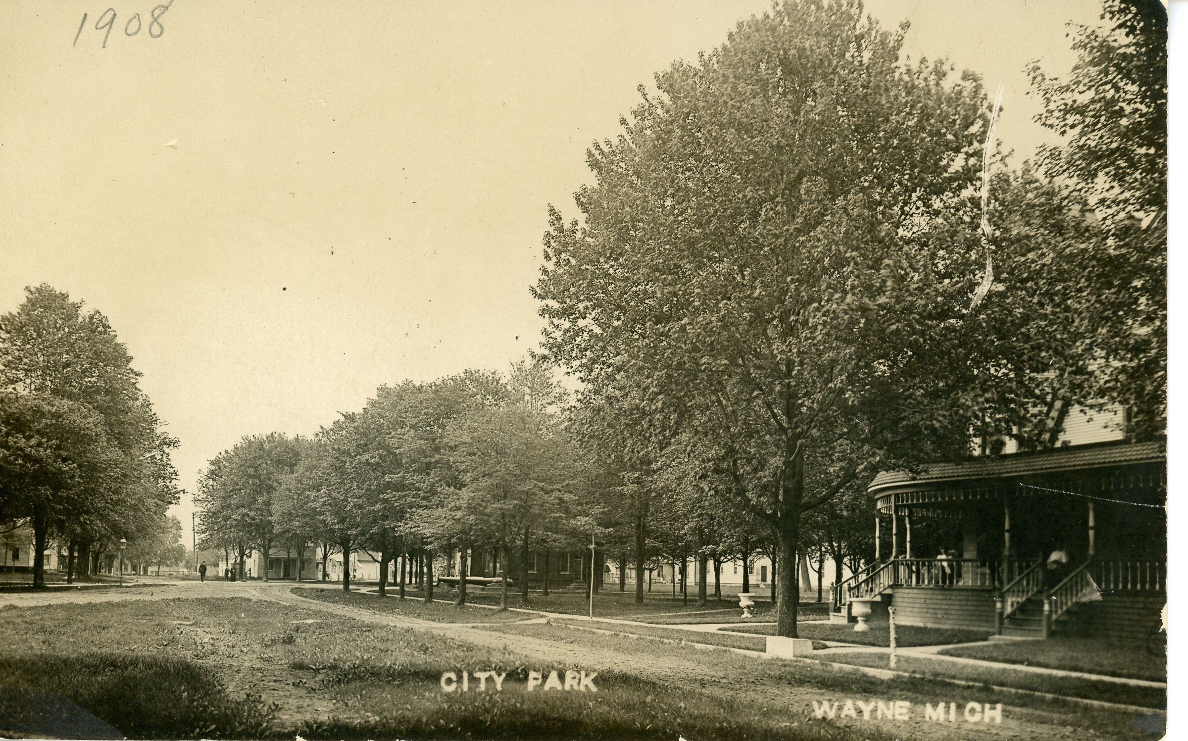 Biddle street looking North. 1908. Village park in center, Moore house at right.